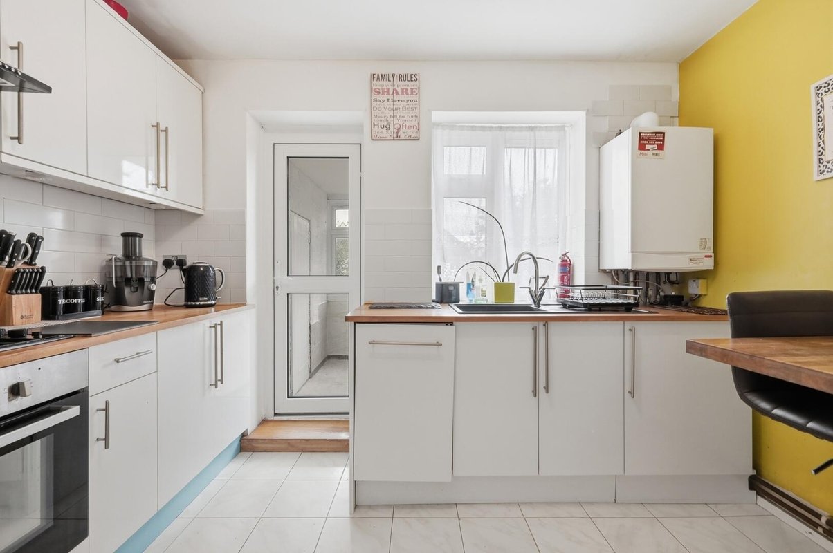 The separate contemporary kitchen is fully fitted and offers ample space for a breakfast table, with a utility area complete with a useful built-in storage cupboard. The fully tiled shower room continues the modern feel, providing a clean and stylish space.