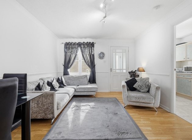 Equally close by, Loughton Nature Reserve and the vast, historic expanse of Epping Forest, perfect for leisurely walks and outdoor pursuits, are 0.6 miles on foot. The modern apartment is entered by a private, central entrance door, into a small porch and from there into the main living/dining room which overlooks the beautiful deep green in front of the home.