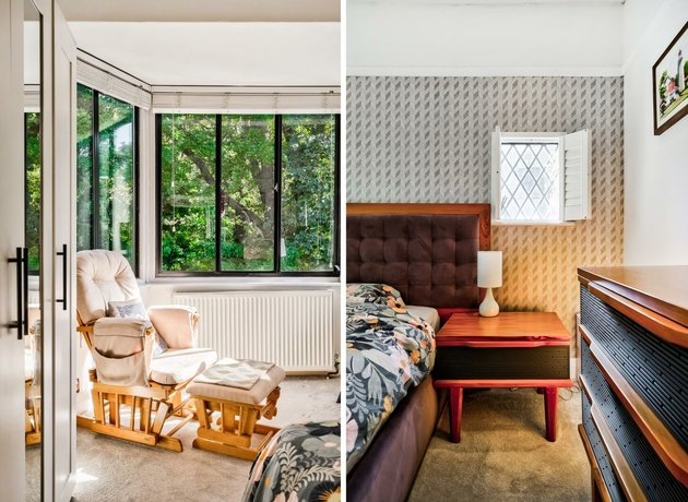 There are two well-sized double bedrooms, including a principal room with tranquil, elevated views over the forest and a second bedroom benefitting from bespoke fitted wardrobes.