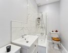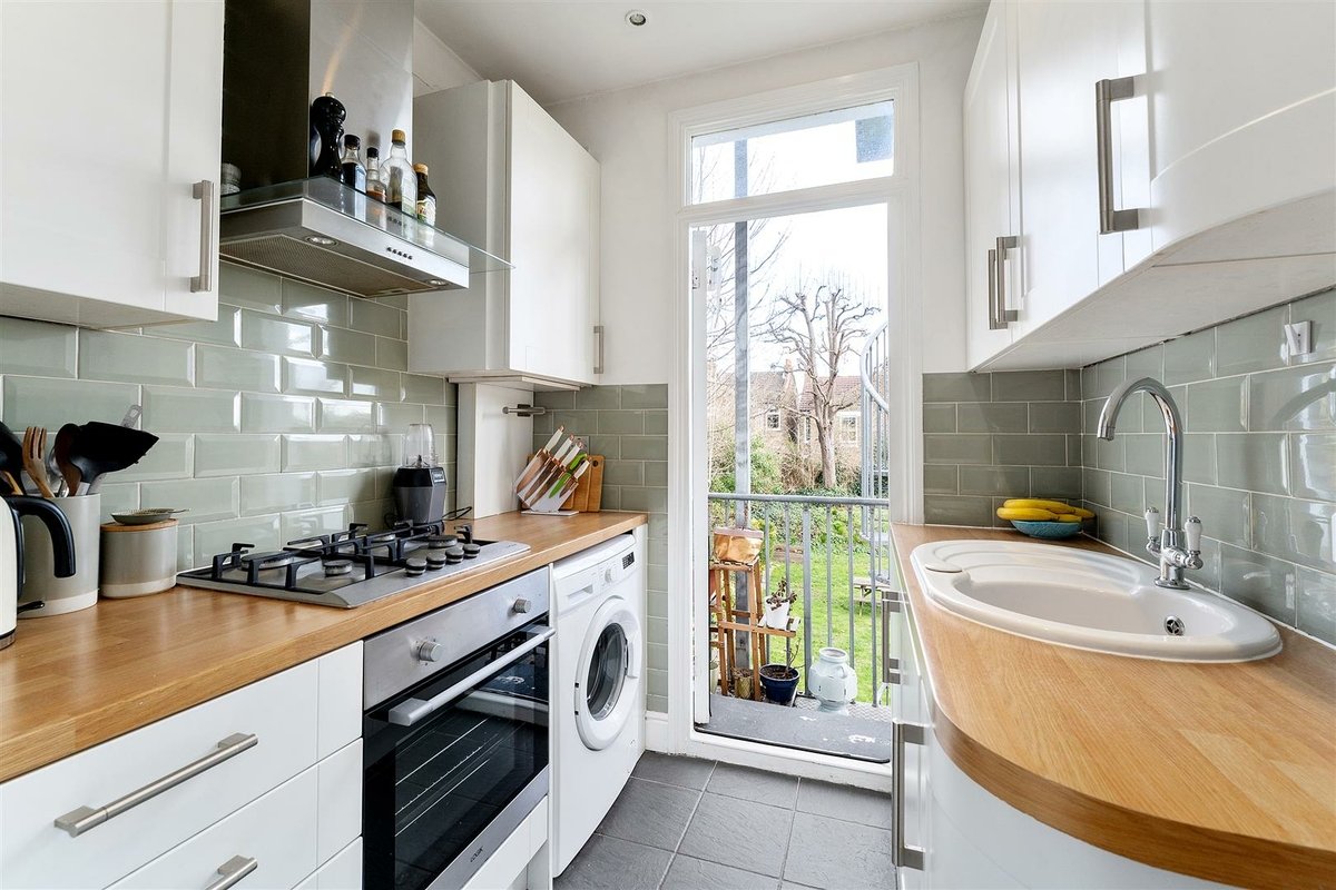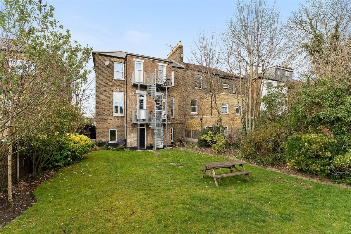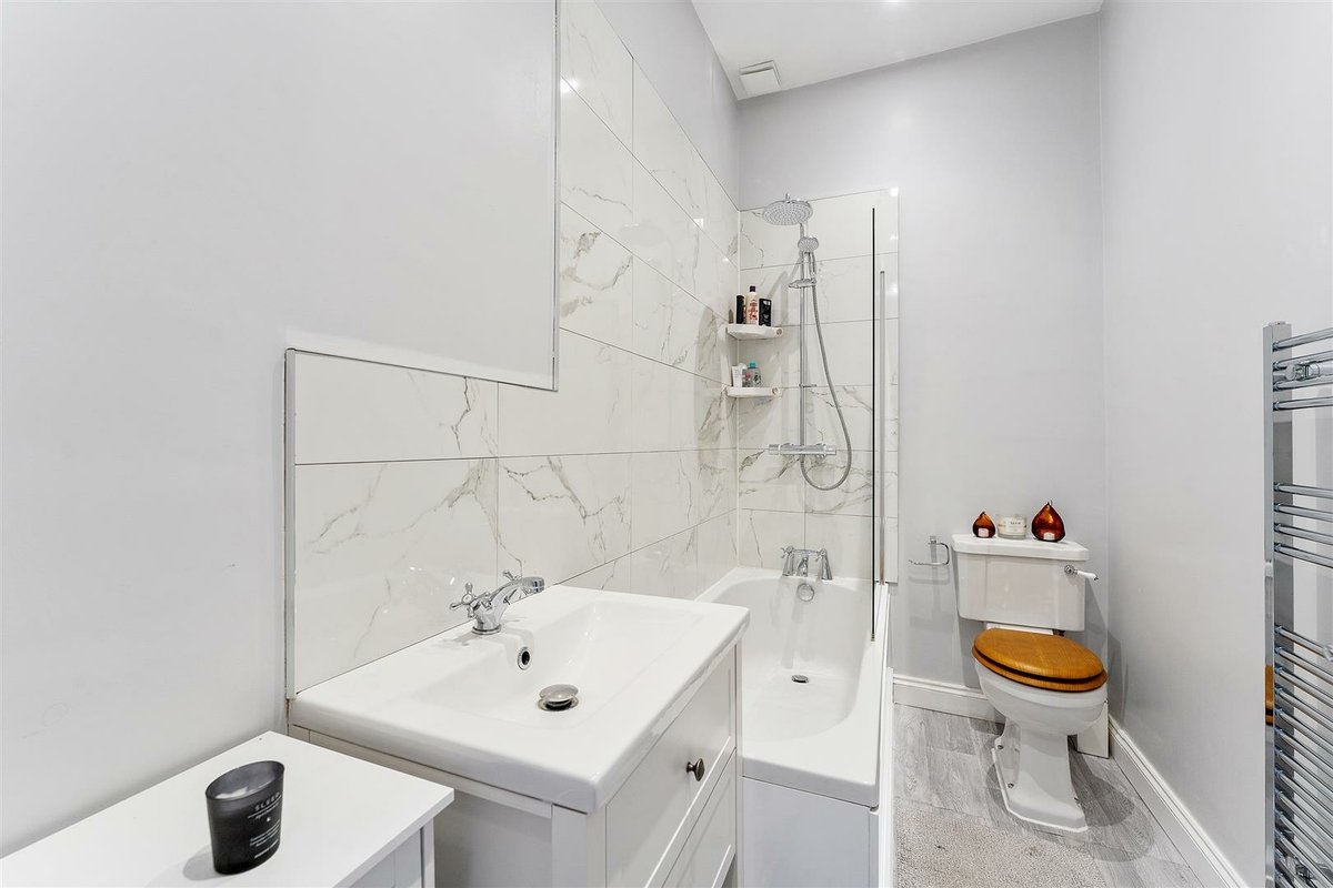 The accommodation is comprised of a large bedroom flooded with natural light thanks to the large bay window. There is also a lounge/dining room with views over the rear garden, a classic crisp white bathroom with an overhead shower and impressive marble wall tiles and a contemporary kitchen that leads out a small balcony area and down to the large, well-kept communal garden.