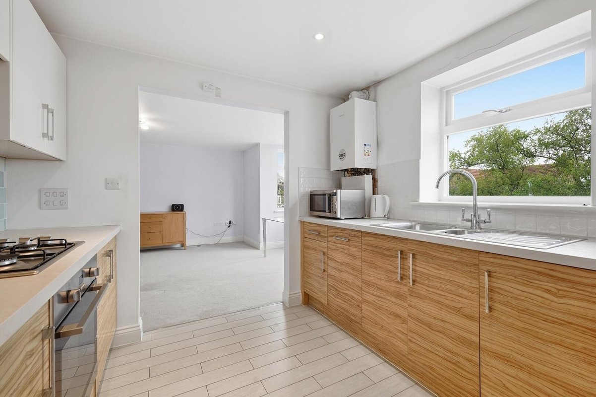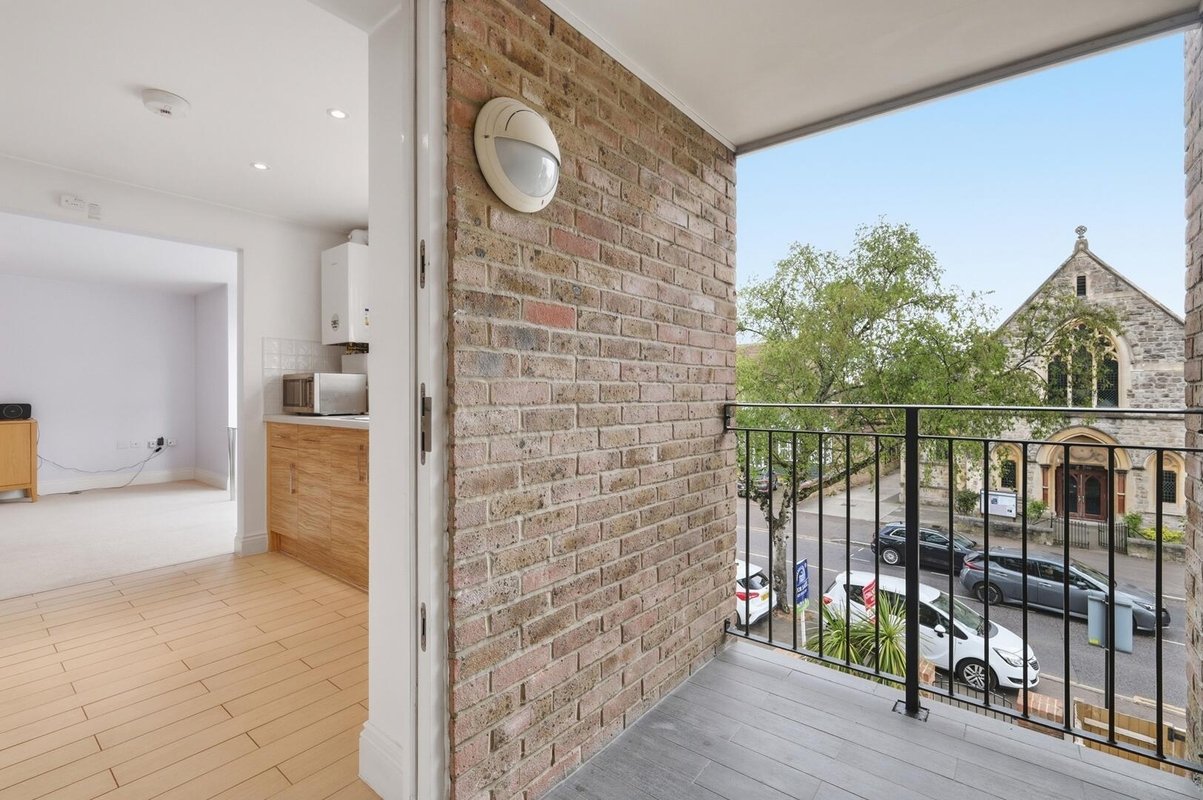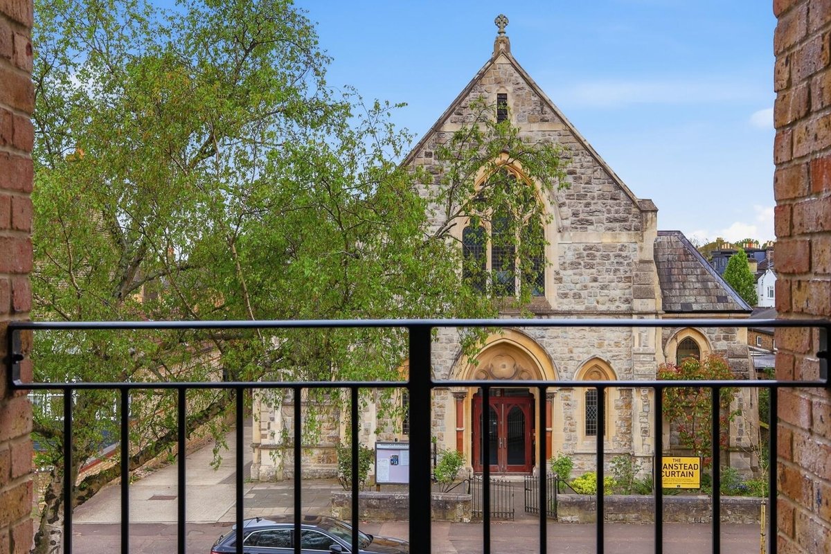 The layout is thoughtfully proportioned, offering ample room for a relaxed lounge setup alongside a dedicated dining area for hosting friends and family. This space flows naturally into a well-appointed kitchen that features a comprehensive range of integrated appliances and extensive worktop space for meal preparation. From here, you can step out onto a generous private balcony that serves as a peaceful retreat, offering a unique vantage point over the local architecture of the Wanstead Methodist Church. It is the perfect spot to enjoy a quiet morning coffee while the neighbourhood awakens.