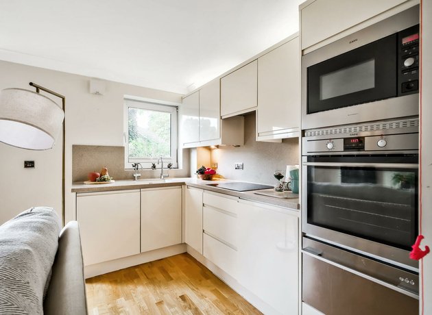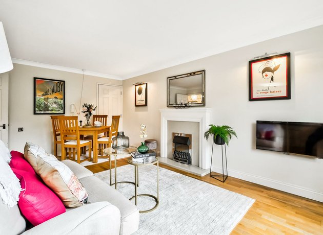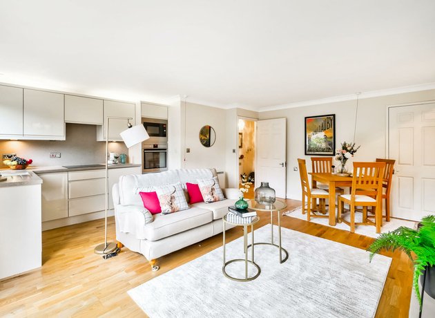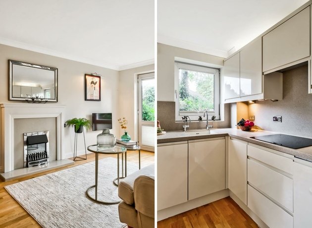 This particular apartment is a rare find. Offering direct access to the beautifully kept communal gardens via its own private door, as well as through the main residents’ entrance, inside the flat is bright, modern and stylish throughout. Featuring a well-proportioned open-plan kitchen/living/dining area with deep utility cupboard, two generous double bedrooms with fitted wardrobes (both with garden views), and a luxuriously appointed shower room complete with underfloor radiant heating, wall-hung WC and basin with integrated storage; all finished to a high standard and designed with ease of maintenance in mind. The kitchen also offers high-end appliances, including a drawer dishwasher.