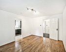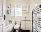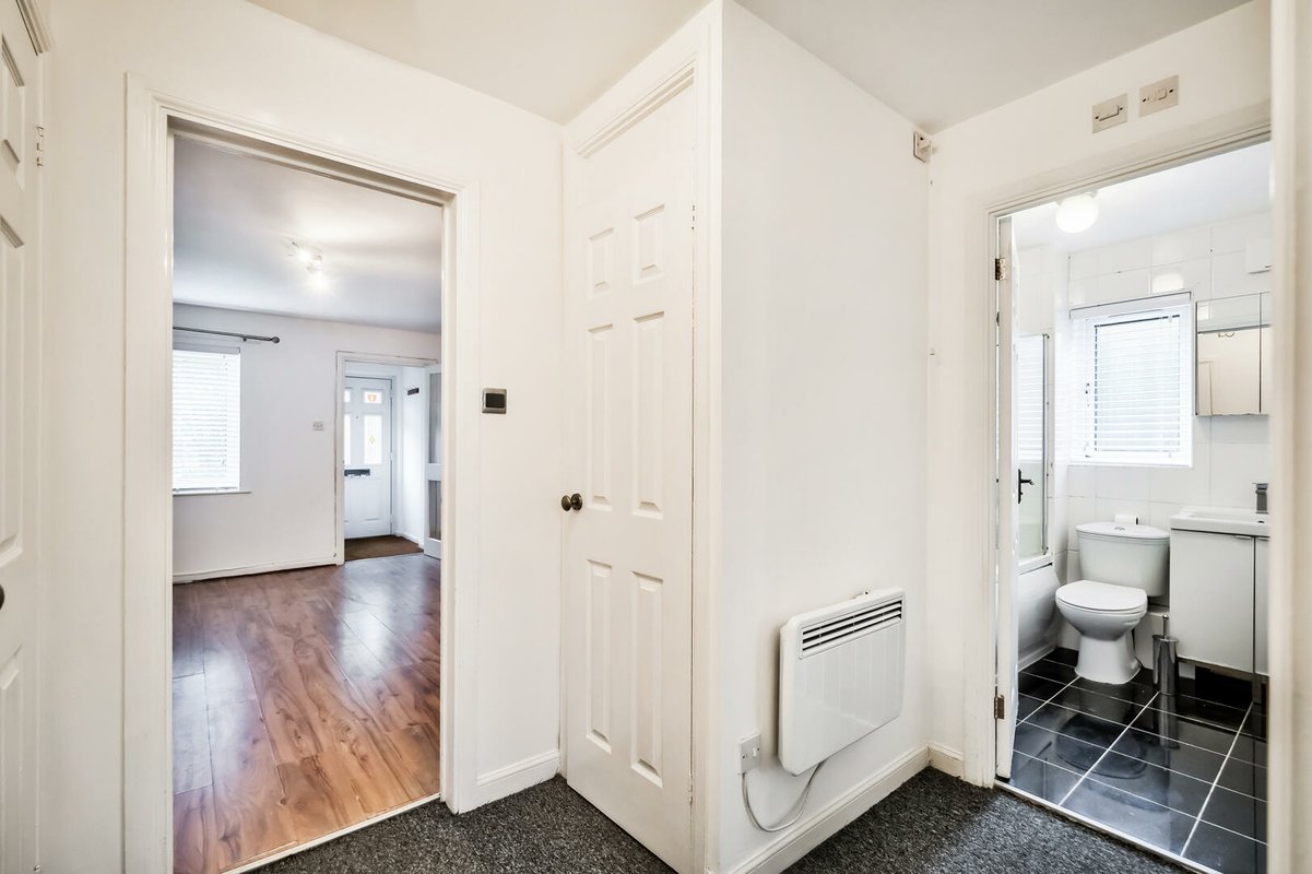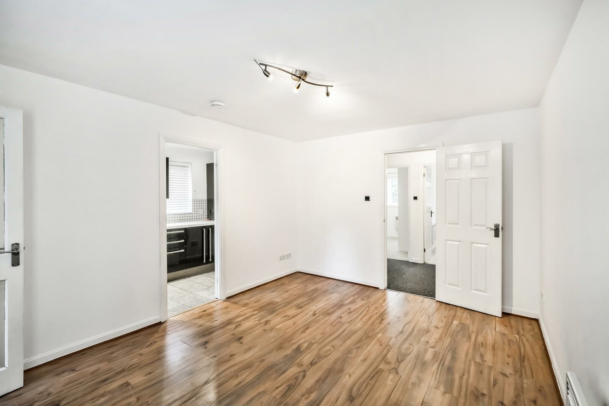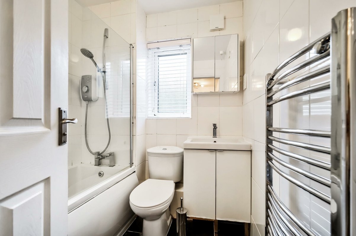 Off the sitting room you will find a modern kitchen fitted with a range of high gloss cabinets complemented by contrasting work surfaces and integrated appliances including an oven, hob and extractor. The kitchen feels bright and airy thanks to its dual aspect windows set at the front and side of the building.