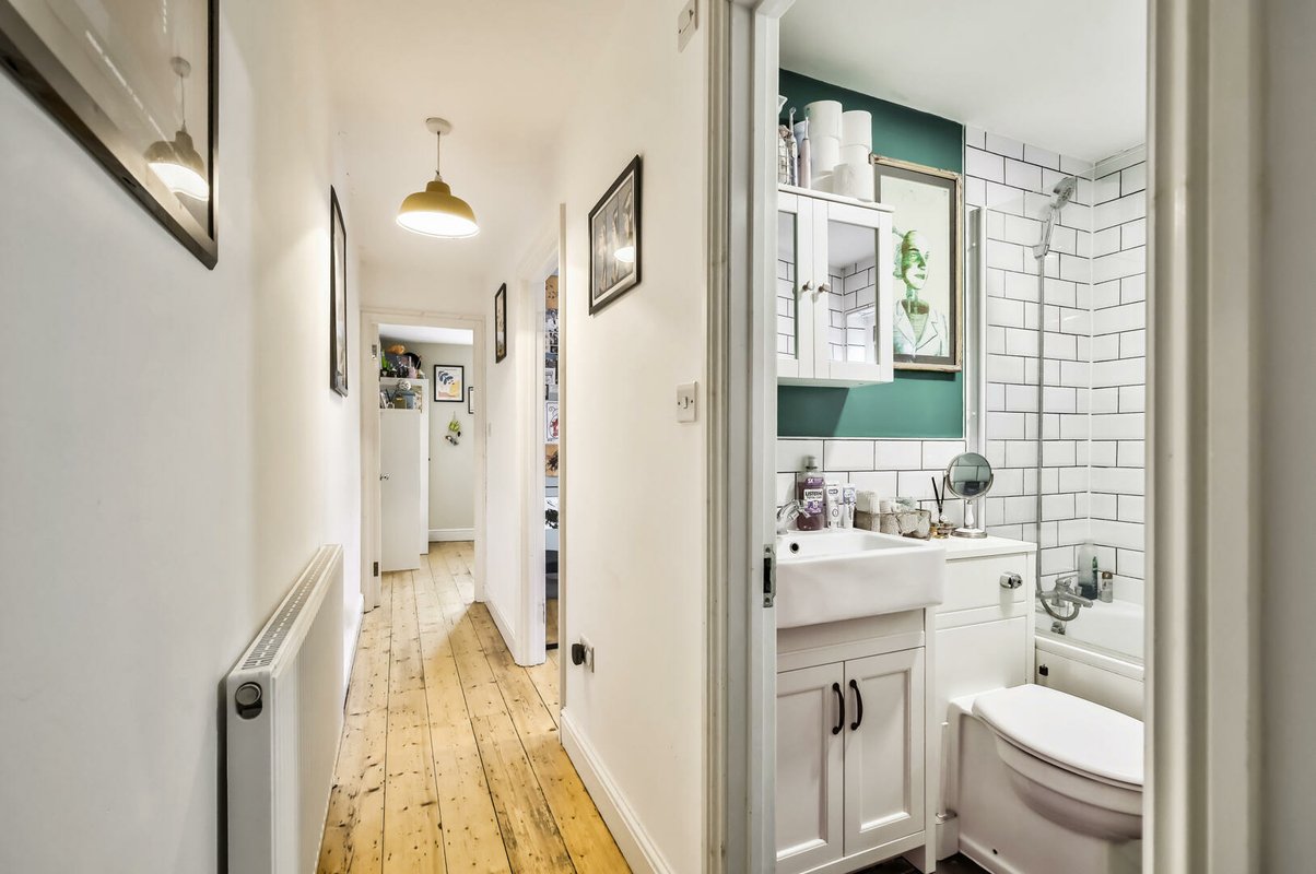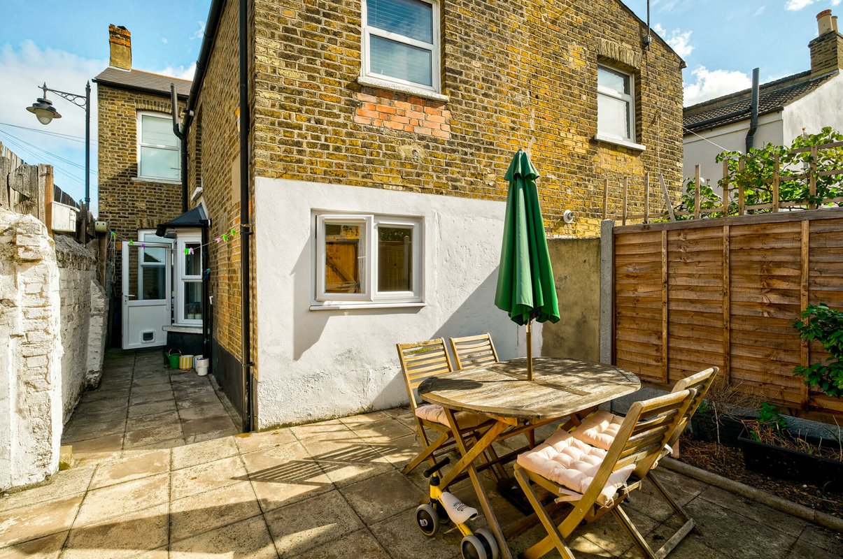 *SOLD BY PETTY SON & PRESTWICH* With its private south-westerly garden, designated parking space, basement storage and share of freehold, this beautiful home blends period charm with modern convenience in one of Leytonstone’s most desirable locations. The property enjoys a striking corner position, its handsome exposed brick frontage and large bay window immediately drawing the eye. Once inside, a central corridor leads effortlessly to each room, while original floorboards flow throughout, enhancing the home’s character and creating a sense of continuity. The spacious reception room is a wonderful place to relax or entertain, with high ceilings, a large bay dressed with plantation shutters, bespoke fitted cabinetry and shelving, and a stunning feature fireplace as its centrepiece. Both bedrooms are generous in size, filled with natural light and offering excellent proportions. The contemporary bathroom is finished with a sleek white suite and fitted units, complemented by white tiles and a bold green feature wall that adds a stylish splash of colour. The separate kitchen continues the property’s balance of character and practicality, fitted with shaker-style cabinets and wooden work surfaces.