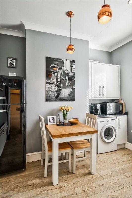 Step inside, and you’re welcomed by a spacious, tiered landing that sets the tone for the entire property: elegant, stylish, and full of character. Spanning a generous 935 sqft, this delightful home features three well-sized double bedrooms. Two of them come complete with built-in wardrobes, offering that extra bit of storage. The principal bedroom is a standout – not only is it spacious enough for a king-size bed, but it even has room for a work nook, perfect for those moments when you need a quiet corner to catch up on work or indulge in some creativity. Need flexibility? The third bedroom can easily be transformed into an office, a cosy reading room, or a stylish extra lounge. The kitchen is a dream for anyone who loves to cook or entertain. With plenty of storage and countertop space, the wood floors create a warm contrast to the sleek, white kitchen units – it’s both functional and stunning. And when it’s time to relax? Head into the spacious lounge, where natural light floods the room, making it an ideal spot to unwind after a long day. The shower room is the cherry on top, with charming fittings and a crisp, clean feel that complements the immaculate rest of the home.