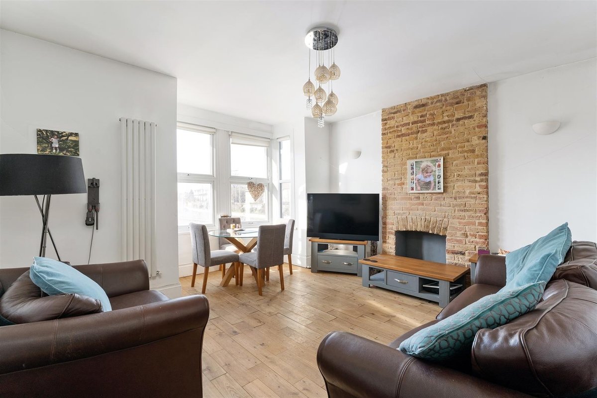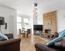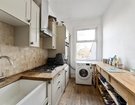 Stepping into a central entrance hall, a fresh white colour palette that runs throughout the home creates a crisp, contemporary feel throughout and helps to accentuate the property's naturally high ceilings. Offering plenty of room for a lounge and dining set, the spacious living/dining room features a striking exposed brick chimney breast, wooden flooring and large bay window. Conveniently located opposite the dining space, the separate kitchen offers a run of units including integrated ovens and a large butler sink whilst the opposite side, currently occupied by a run of freestanding units, could be fitted with further units, a breakfast bar left open to allow for a greater feeling of space. There are two double bedrooms with period style radiators, ideal for friends or family members looking to buy together or as an ideal investment opportunity. There is also a contemporary bathroom with L shaped bath and shower overhead.