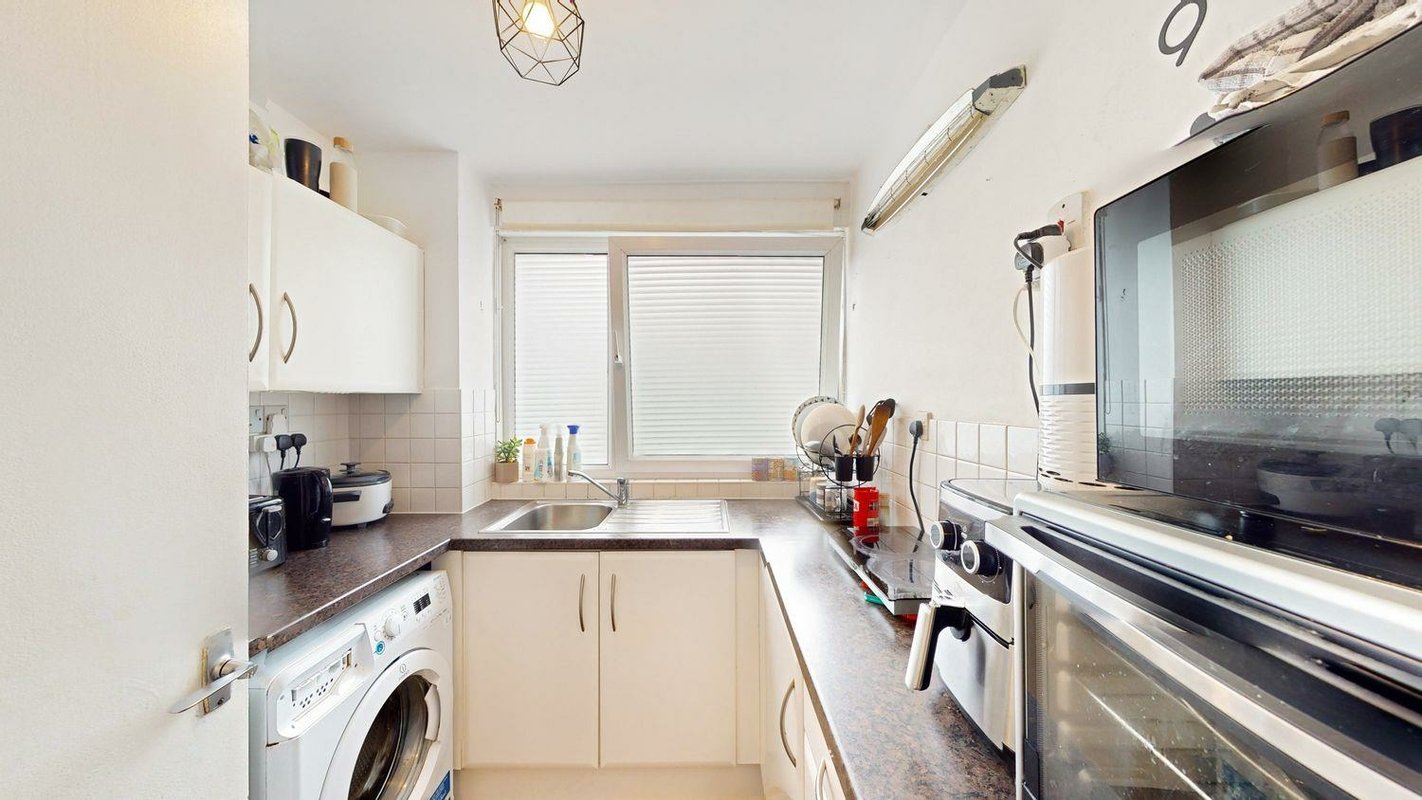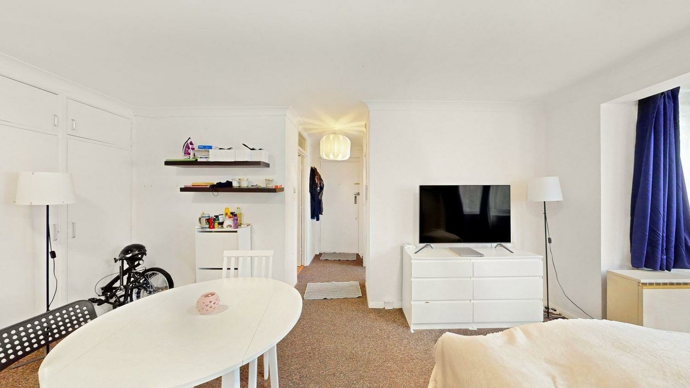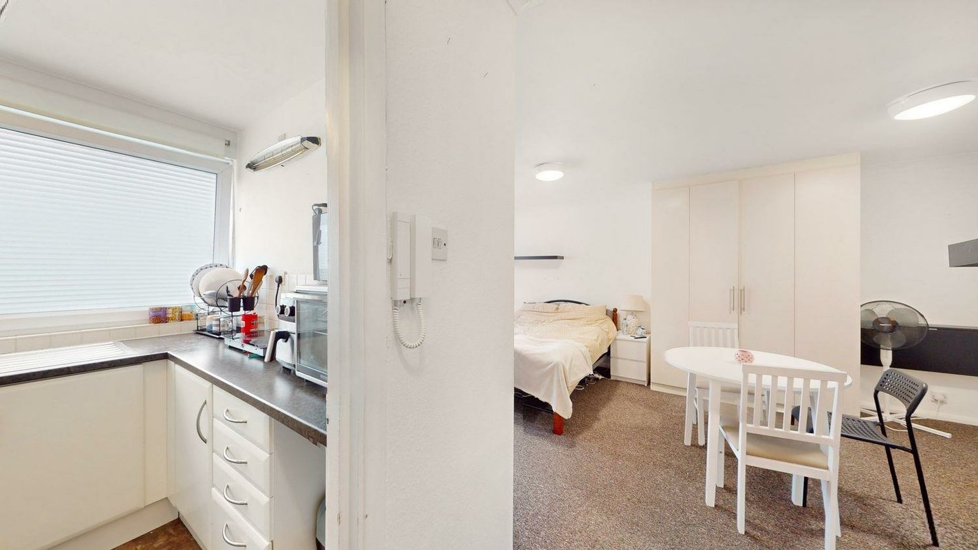 With a long lease, sensible layout and lots of storage cupboards it is the perfect starter home or rental, with the ground floor positioning making it easy and convenient for access. The separate kitchen laid out in a ‘c-shape’ design maximises the storage and worksurface space on possible. A separate bathroom lies opposite, offering a bath with shower overhead. The bedroom/living space is surprisingly spacious for a studio, at approximately 245 square feet, with a South/Westerly facing both the main living room and kitchen area naturally light and bright throughout the day. Permit parking is available within the close and wider area.
