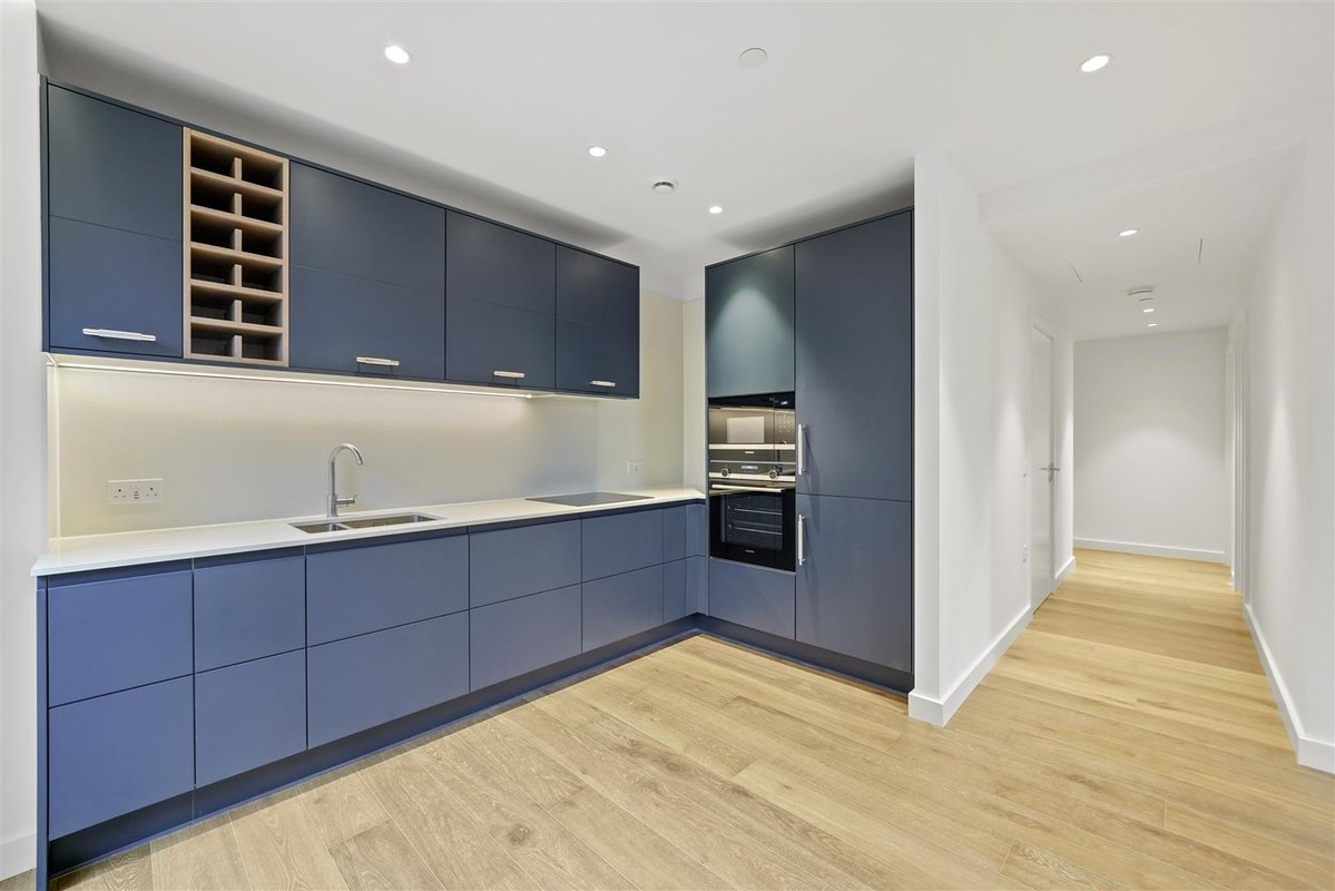 The well-proportioned open-plan kitchen, living and dining area is ideal for modern living and entertaining. The sleek kitchen is fitted with a comprehensive range of integrated appliances, including a fridge/freezer, induction hob with extractor, oven, microwave, dishwasher, washer/dryer, and a pull-out recycling and waste system.