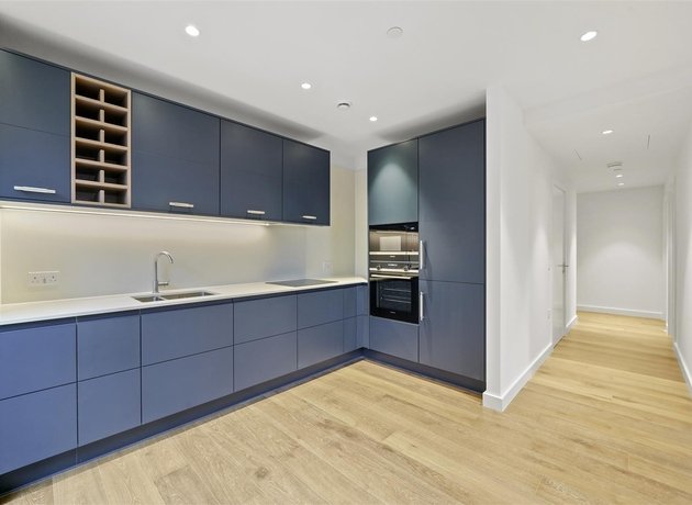 The well-proportioned open-plan kitchen, living and dining area is ideal for modern living and entertaining. The sleek kitchen is fitted with a comprehensive range of integrated appliances, including a fridge/freezer, induction hob with extractor, oven, microwave, dishwasher, washer/dryer, and a pull-out recycling and waste system.