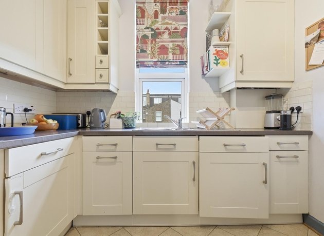To the rear, a bright kitchen and adjacent second bedroom overlook the gardens, creating a peaceful retreat from the buzz of the High Street.