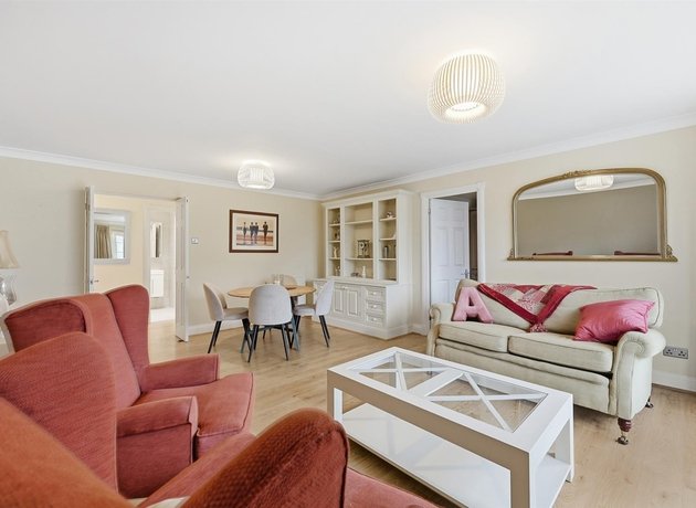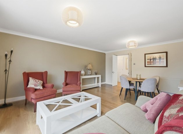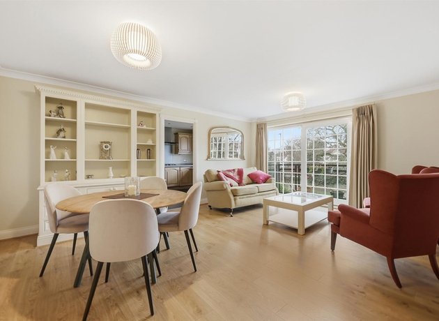 Offered chain-free and set within a highly sought-after and rarely available development, this superb apartment forms part of an exclusive development of just 14 residences, enviably positioned on Woodford Road. Ideally located for commuters, South Woodford Underground Station is approximately 0.4 miles away, with Snaresbrook Station and Wanstead High Street within 0.7 miles, offering a superb array of cafés, boutiques and green spaces. Aswell as its excellent connectivity, the apartment enjoys a wonderfully leafy outlook. Constructed in the mid 1990’s, the developments exterior matches the clean and well presented interior, with perfectly pruned shrubs and immaculate lawn framed by wall and wrought iron railings, leading inside to a larger, spacious communal entrance hall serviced by lifts and bright hallway. The apartment is beautifully proportioned throughout, featuring a wide central hallway with a generous storage cupboard and a separate airing cupboard. A sleek, fully tiled shower room with wall-mounted WC and vanity storage provides practicality with contemporary style. Double doors open into the impressive 273 sq ft reception/dining room, flooded with natural light and featuring bespoke fitted storage. Floor-to-ceiling sliding doors lead directly onto the private West-facing balcony, perfect for evening sun. Adjoining the reception is a generous kitchen/breakfast room, fitted with a classic shaker-style kitchen, modern integrated appliances and extensive worktop space on three sides. The accommodation is completed by two genuine double bedrooms, including a particularly striking principal suite measuring over 24 feet in length, featuring four built-in double wardrobes and a well-appointed en-suite bathroom with shower over bath. The property further benefits from one allocated, underground parking space and is offered for sale chain-free making it ideal for those requiring a swift move.