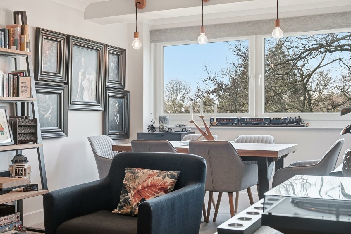 From the moment you enter, the attention to detail is clear. The spacious open plan reception room has been cleverly zoned to create a defined dining space within the square bay window alongside a generous lounge area designed for relaxation. Stylish feature lighting enhances both spaces, adding warmth and a modern design edge. A particularly striking addition is the bespoke under-stairs bar, a creative feature complete with smart built-in storage, making it ideal for entertaining. In a further nod to intelligent design, the owners have replaced traditional electric storage heaters with electric thermo-skirting, ensuring clean lines throughout and freeing every wall to maximise layout flexibility. Each room is also individually zoned with a smart home thermostat.