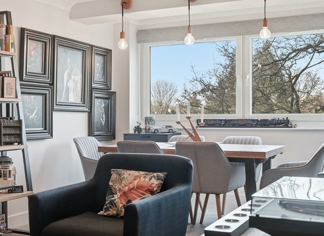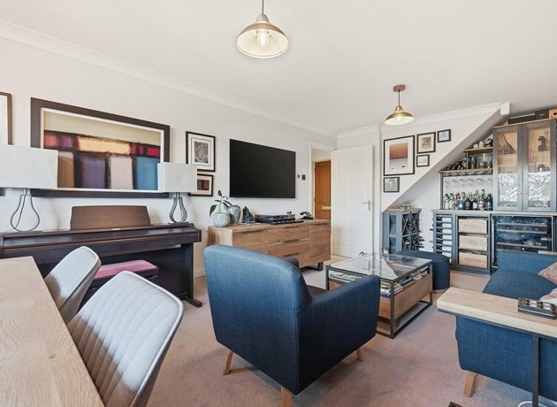 From the moment you enter, the attention to detail is clear. The spacious open plan reception room has been cleverly zoned to create a defined dining space within the square bay window alongside a generous lounge area designed for relaxation. Stylish feature lighting enhances both spaces, adding warmth and a modern design edge. A particularly striking addition is the bespoke under-stairs bar, a creative feature complete with smart built-in storage, making it ideal for entertaining. In a further nod to intelligent design, the owners have replaced traditional electric storage heaters with electric thermo-skirting, ensuring clean lines throughout and freeing every wall to maximise layout flexibility. Each room is also individually zoned with a smart home thermostat.
