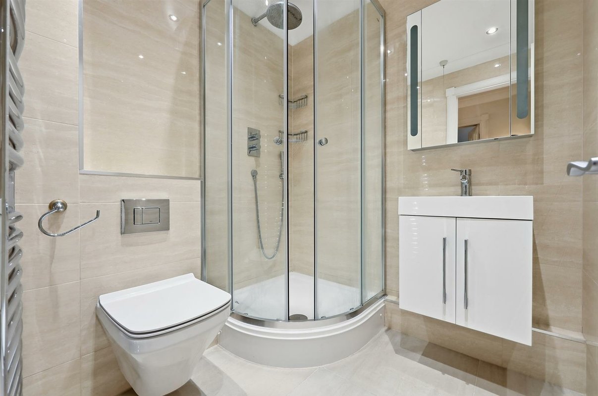 - Second, modern shower room