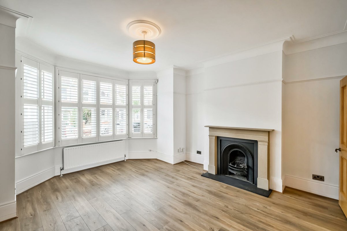 The front reception room is bright and spacious, featuring a stunning shuttered bay window, fireplace, and brand new flooring that flows seamlessly through to the rear of the home.