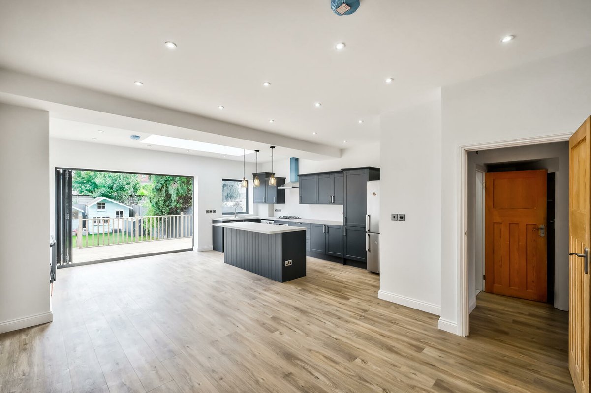 The real showstopper is the impressive, brand new rear extension; a light-filled open-plan kitchen, dining, and family area with bifolding doors opening onto a raised decked terrace.