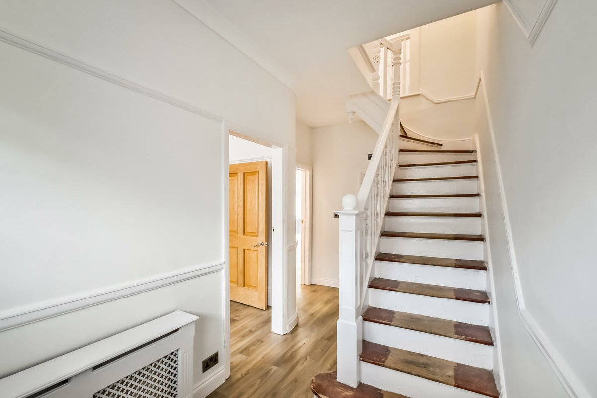 Upon entry, you’re welcomed by a generous hallway with a beautifully preserved carved balustrade. The high ceilings, large sash windows, dado rails, and stained glass details speak to the home’s Edwardian heritage, while modern upgrades offer everyday comfort and luxury.