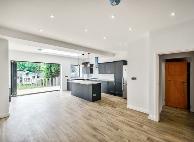The real showstopper is the impressive, brand new rear extension; a light-filled open-plan kitchen, dining, and family area with bifolding doors opening onto a raised decked terrace.