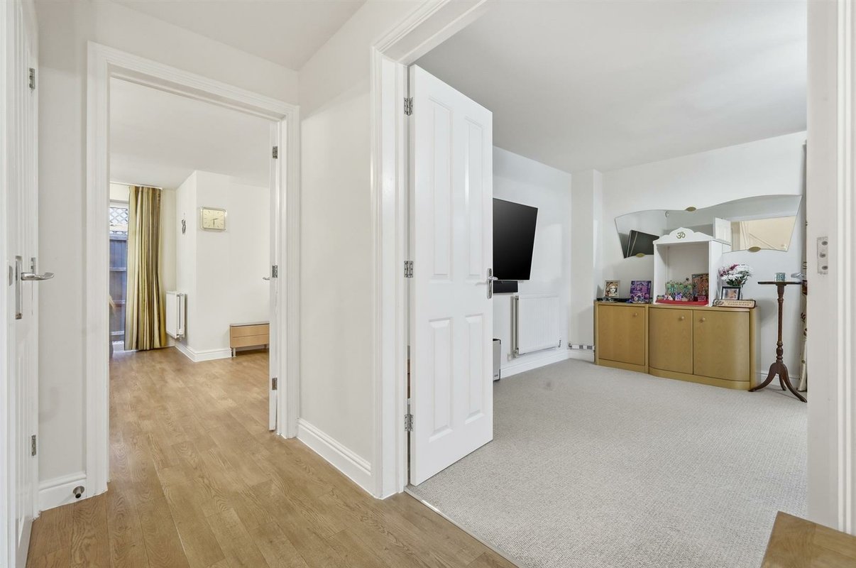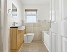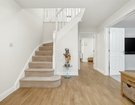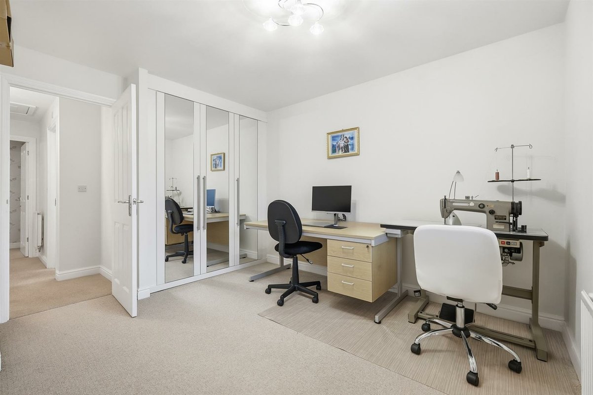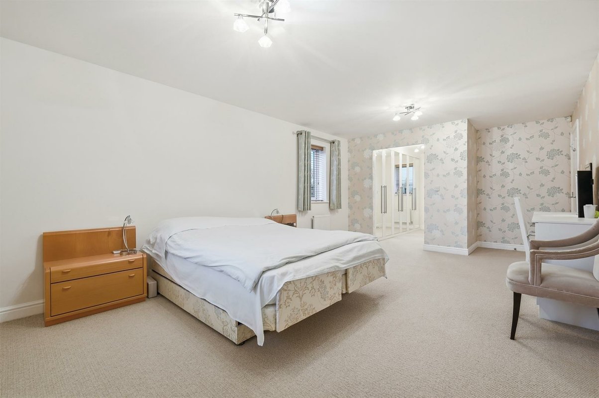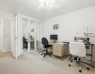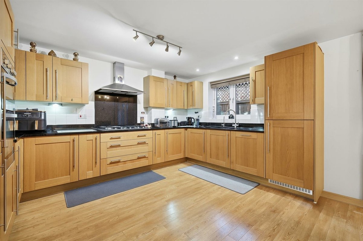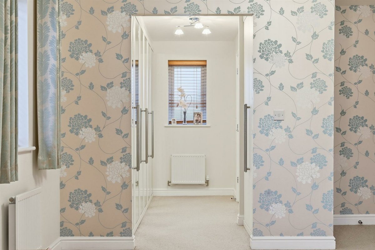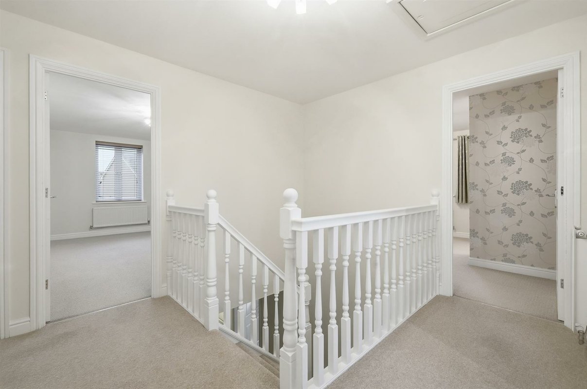 Upstairs, a bright landing leads to four spacious double bedrooms, all featuring bespoke full-height fitted wardrobes. A sleek en-suite shower rooms services one double rooms, while the principal suite enjoys a walk-in dressing area and a spacious en-suite with both bath and separate shower. A well-appointed family bathroom, also offering bath and shower, serves the remaining bedrooms.