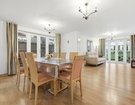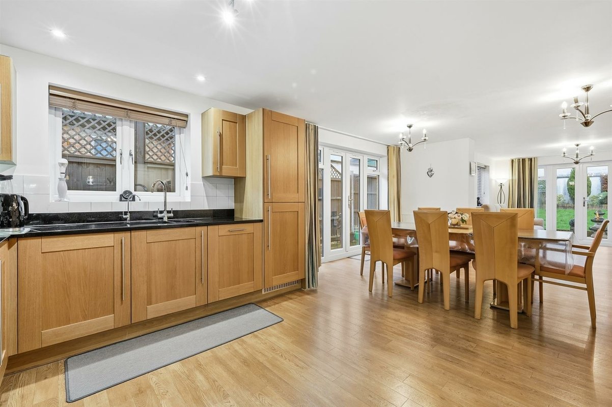 To the rear sits the real focal point of the home; a 33’10” open-plan kitchen, dining and family space designed for modern living. With two sets of doors opening onto the wrap-around garden, this room is filled with natural light and offers excellent flexibility for entertaining or relaxed day-to-day family life. The contemporary kitchen is positioned to one end, with a separate utility room keeping appliances and storage neatly out of sight.