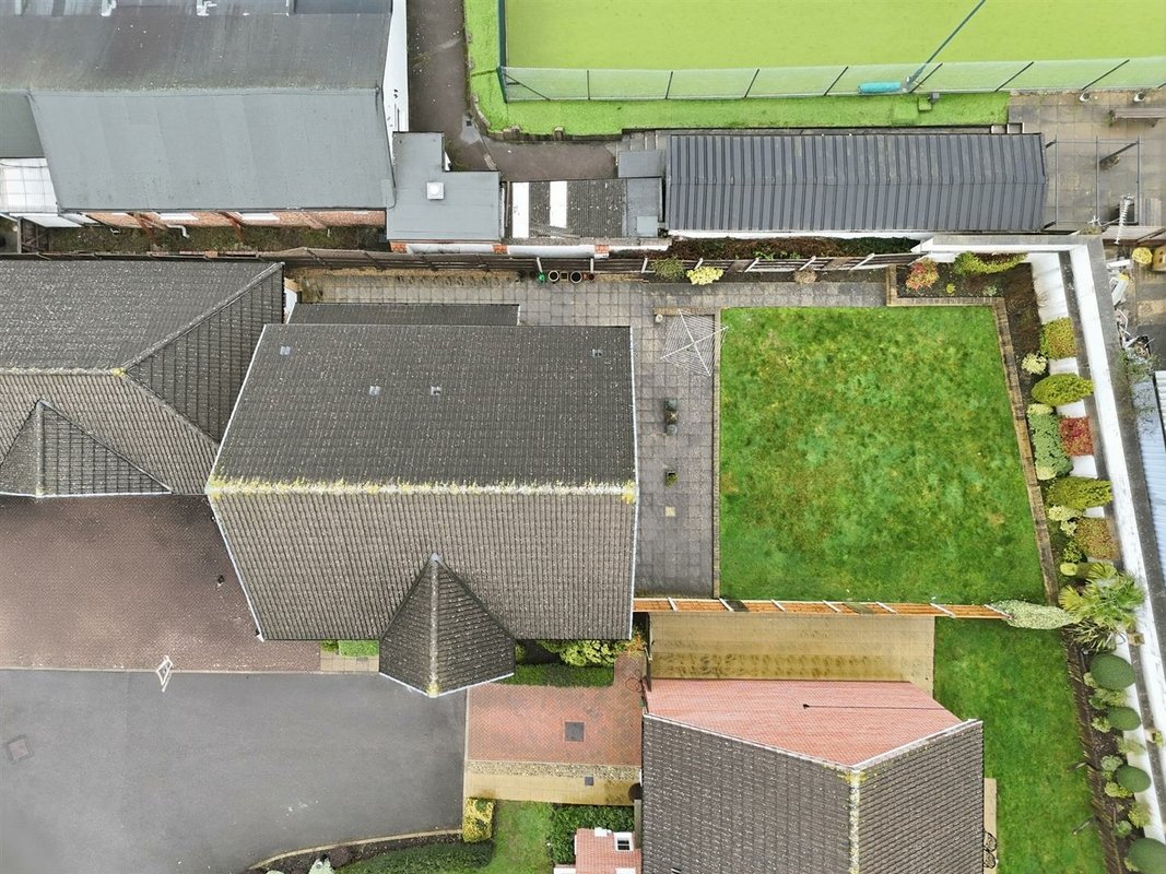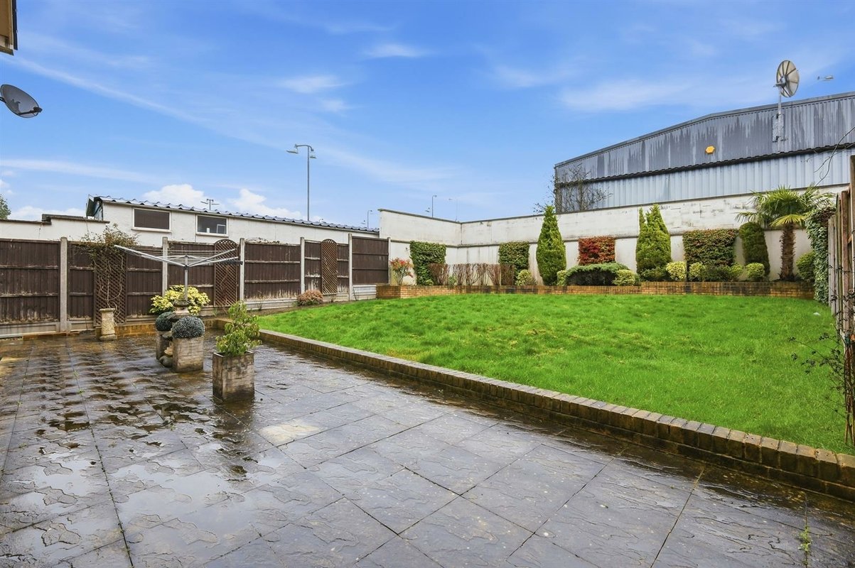 Outside, the double garage and driveway provide generous parking and storage. The wrap-around garden has been landscaped with a large patio area for entertaining, leading to a lawn bordered by neatly maintained beds, offering privacy and plenty of space for families or summer gatherings.