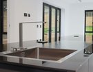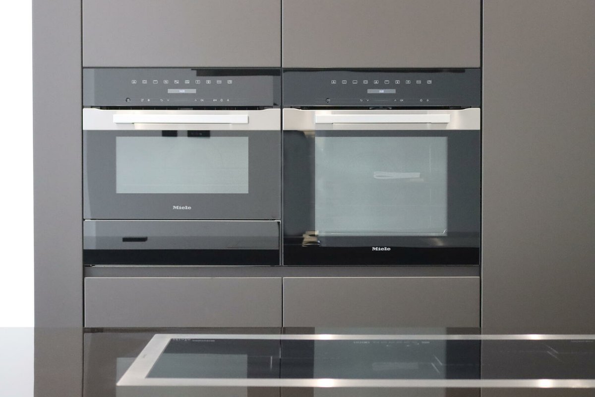 To the rear of the property lies the true heart of the home; a showstopping 27ft kitchen/dining room, meticulously crafted by renowned Italian designer MK Cucine. Thoughtfully designed for both everyday family life and entertaining on a grand scale, the space showcases solid Corian worktops, an expansive central island with wraparound storage, and a complete suite of high-end, integrated appliances. These include Miele ovens, warming drawer, dishwasher, fridge/freezer, and Barazza induction hob, extractor, tap and sink – all beautifully streamlined within the contemporary design. A sleek run of wall units, including a generously sized pantry cupboard, offers additional storage, enhancing both the aesthetic and practicality of the space. Adjacent, a separate utility room, a must-have for homes of this scale and calibre, keeps the main kitchen clutter-free, with a second sink and further integrated Miele appliances, including a washing machine and tumble dryer.
