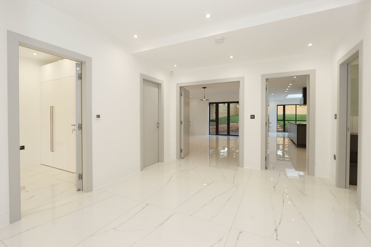 The property enjoys a leafy outlook to the front, offering a welcome sense of space and privacy. Despite its peaceful setting, the home is exceptionally well connected, with the M11 and wider road network within easy reach – ideal for commuters and families alike seeking effortless access in and out of the capital. The property has undergone a meticulous full-scale renovation, delivering a truly turnkey opportunity for buyers seeking luxury living in a prime Chigwell location. Upon entry, you're welcomed by an expansive hallway of approximately 20ft, complete with large-format Italian porcelain tiling that flows seamlessly across the entire ground floor; a striking introduction to the style and scale this home affords.