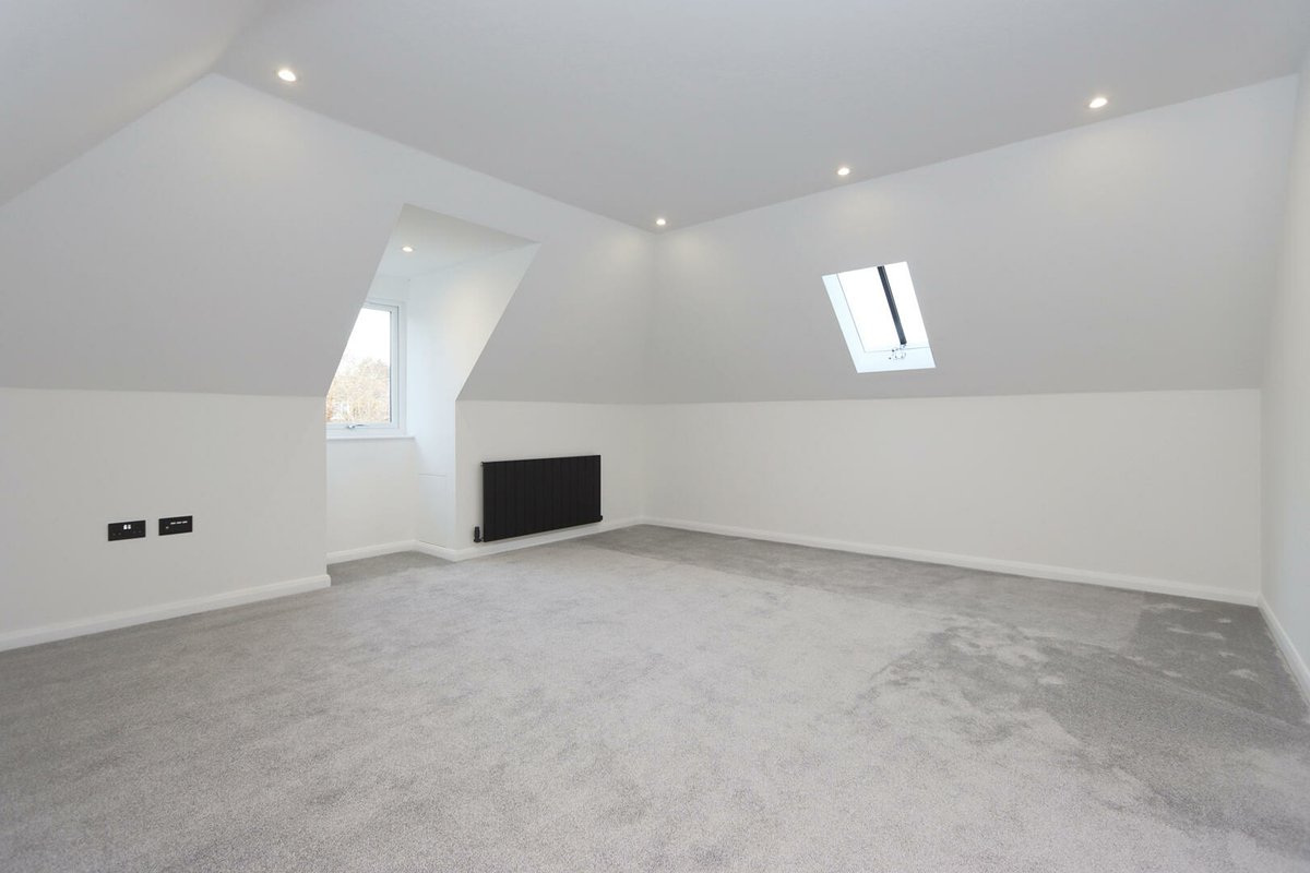 The first-floor hosts three substantial double bedrooms, each offering excellent proportions. One of the bedrooms benefits from a stylish en-suite shower room, while the standout feature on this level is the impressive principal suite – a true retreat, complete with a bespoke dressing room and a luxuriously appointed en-suite bathroom. This indulgent space features a wet room-style shower, freestanding bath, and wall-hung W.C. The second floor continues to impress, offering two further double bedrooms of equal size – an ideal layout for children or guests, ensuring harmony and comfort. A sleek, modern shower room serves this floor, complete with excellent eaves storage, maximising space without compromising design.