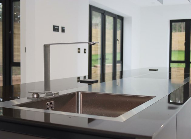 To the rear of the property lies the true heart of the home; a showstopping 27ft kitchen/dining room, meticulously crafted by renowned Italian designer MK Cucine. Thoughtfully designed for both everyday family life and entertaining on a grand scale, the space showcases solid Corian worktops, an expansive central island with wraparound storage, and a complete suite of high-end, integrated appliances. These include Miele ovens, warming drawer, dishwasher, fridge/freezer, and Barazza induction hob, extractor, tap and sink – all beautifully streamlined within the contemporary design. A sleek run of wall units, including a generously sized pantry cupboard, offers additional storage, enhancing both the aesthetic and practicality of the space. Adjacent, a separate utility room, a must-have for homes of this scale and calibre, keeps the main kitchen clutter-free, with a second sink and further integrated Miele appliances, including a washing machine and tumble dryer.