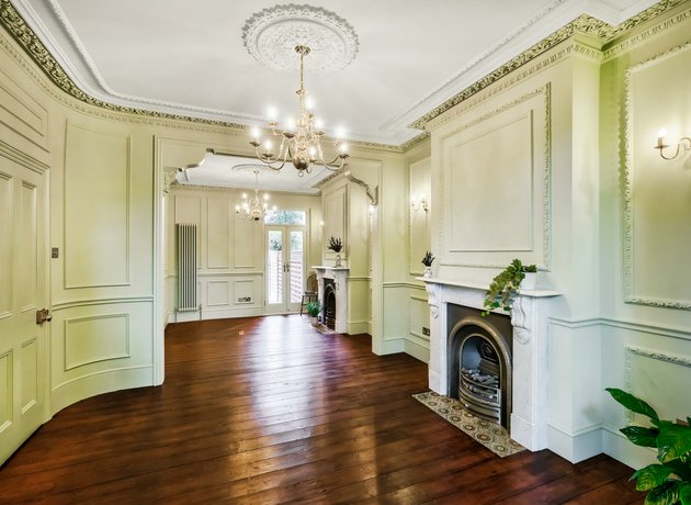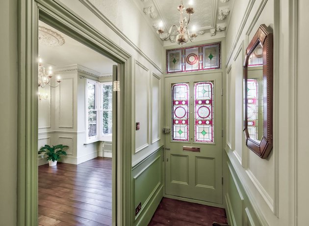 The striking exterior immediately captures the eye, with beautifully cleaned London brickwork and original Victorian mosaic path tiles leading to the front door. Elegant wrought iron fencing completes the picture, setting the tone for what lies within. Upon entering, the wide and welcoming hallway retains all the charm of its era with its original cornicing and polished flooring. The grandeur continues through to a beautifully proportioned double reception room, where the original floorboards, intricate cornicing, and restored Victorian fireplaces are complemented by newly installed double-glazed sash windows. French doors open from the rear of this space onto the garden, allowing natural light to pour in and offering seamless access to outdoor living.