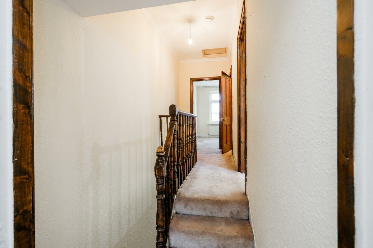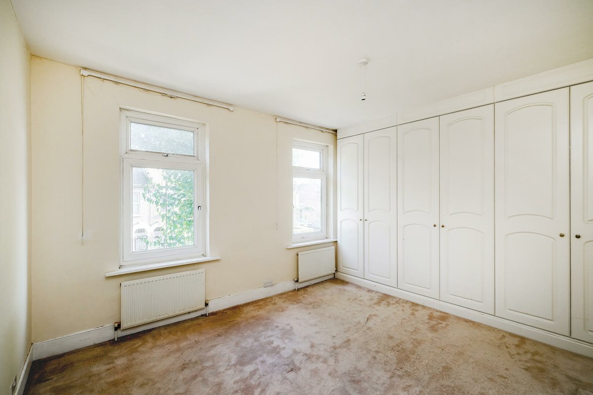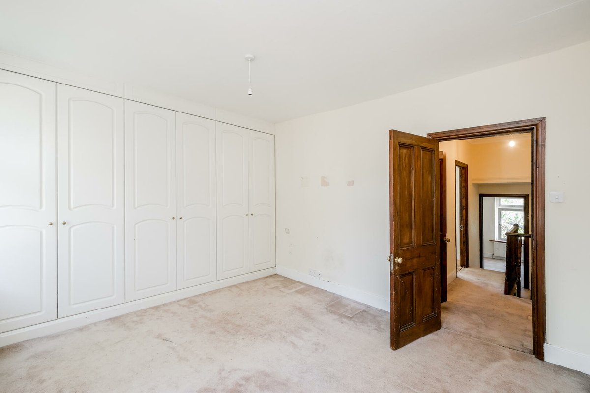 The first floor offers three bedrooms and a shower room, with the principal bedroom spanning the full width of the property. This impressive main bedroom benefits from three fitted double wardrobes, providing excellent storage, taking full advantage of the high ceilings and space on offer.