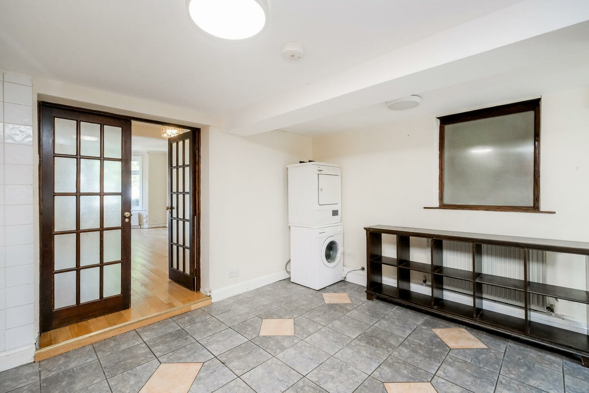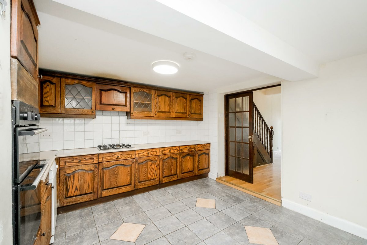 To the rear, the kitchen and dining area sits within the extension, leading to a shower room which could easily serve as a dedicated utility space or be incorporated to form an even larger open-plan kitchen/diner, depending on preference.