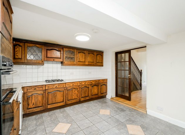 To the rear, the kitchen and dining area sits within the extension, leading to a shower room which could easily serve as a dedicated utility space or be incorporated to form an even larger open-plan kitchen/diner, depending on preference.