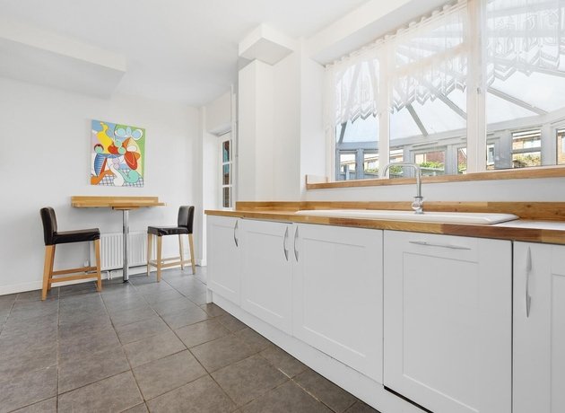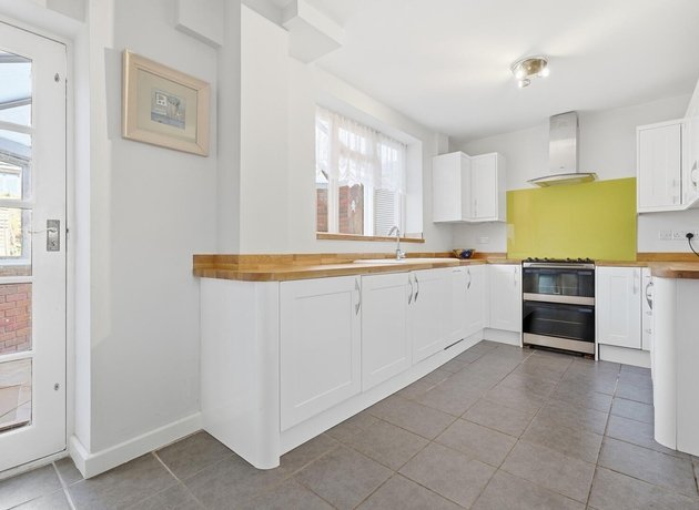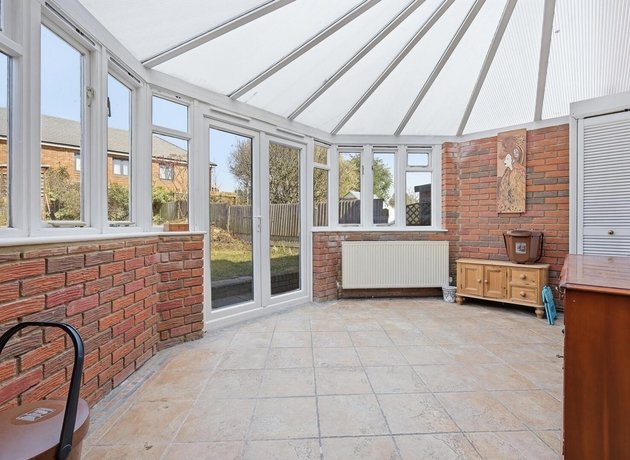 The property itself offers well-proportioned and versatile accommodation throughout. A handy entrance porch leads into a bright and spacious reception room, and from here, you are guided into a stylish kitchen/breakfast room. Fitted with classic white shaker-style units complemented by wooden work surfaces, the kitchen is arranged in an efficient ‘C-shape’ to maximise both storage and workspace, with ample room for an American-style fridge/freezer. To the rear, a generous conservatory provides an excellent additional reception space, perfectly suited as a dining area or playroom. There is exciting potential to reconfigure or extend (subject to planning permission), creating a larger open-plan kitchen/dining/living space tailored to your needs. The rear garden is arranged with a combination of lawn and patio, offering a pleasant outdoor retreat, while a smaller front garden and shared side access add further practicality.