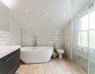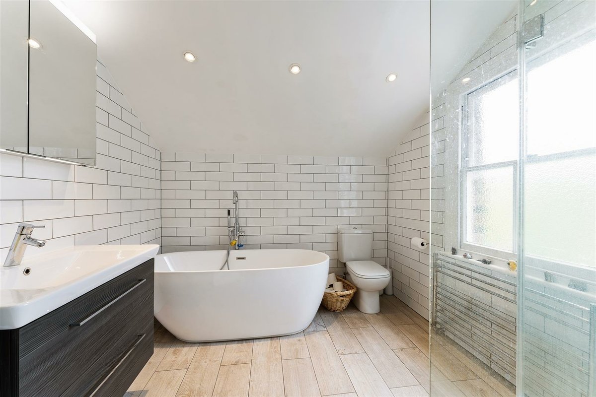 Upstairs, the accommodation continues to impress with two generous double bedrooms and a stylish bathroom, complete with freestanding bath, separate walk-in shower, plank-effect porcelain tiles, and classic metro tiling.