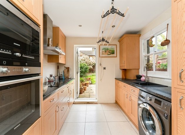 The ground floor boasts two well-proportioned reception rooms, perfect for both relaxing and entertaining, with the dining room opening directly onto the sunny West-facing garden. At the rear, the kitchen is sleek and well-appointed with ample storage and integrated appliances, with further potential to extend (STPP), should you wish to add more space.