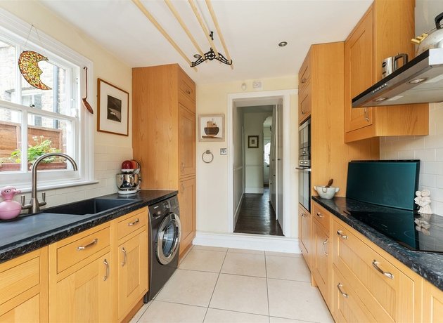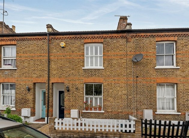 Beyond its chocolate-box façade, featuring a striking exposed brick exterior, sash windows, herringbone path, and a charming white picket fence, the home has been beautifully styled throughout. Inside, you'll find an elegant blend of period charm and thoughtful modern touches: original features, plantation shutters, bespoke traditional cabinetry, and reproduction school-style radiators create a warm, character-filled atmosphere.