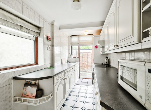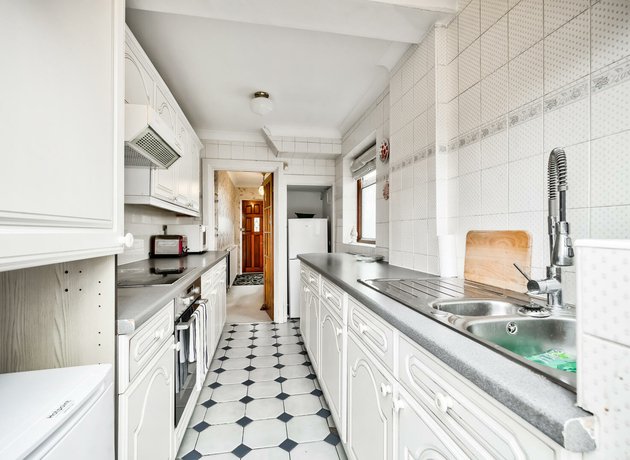 The rear of the reception room creates an ideal dining area and the large patio doors with views over the rear garden creates a peaceful and light living space. A galley kitchen completes the ground floor accommodation.
