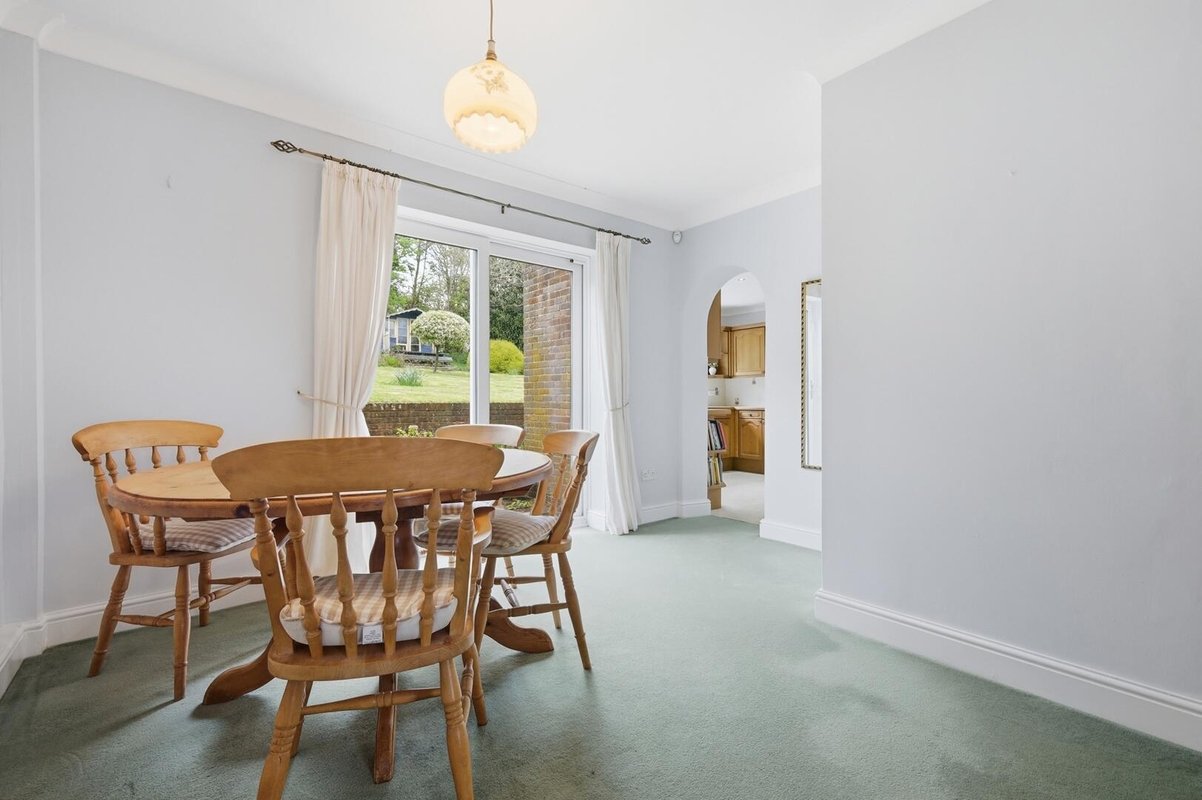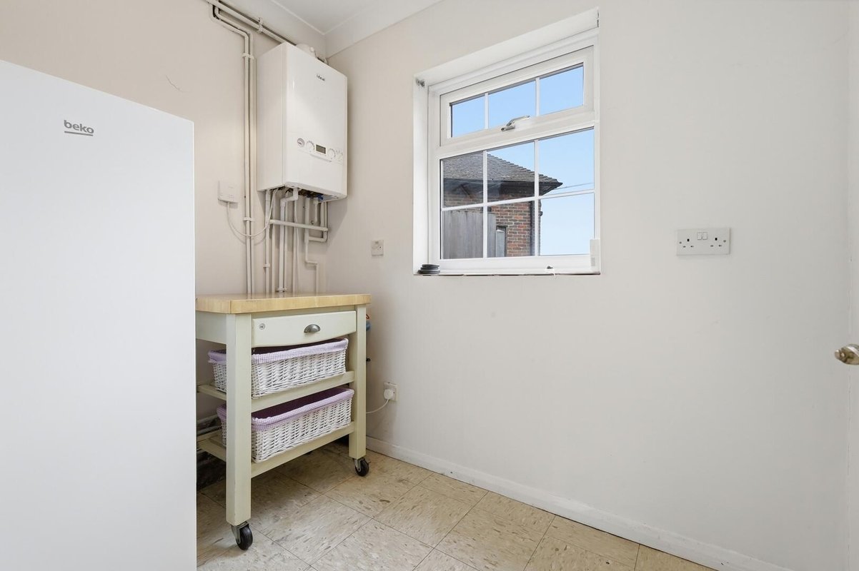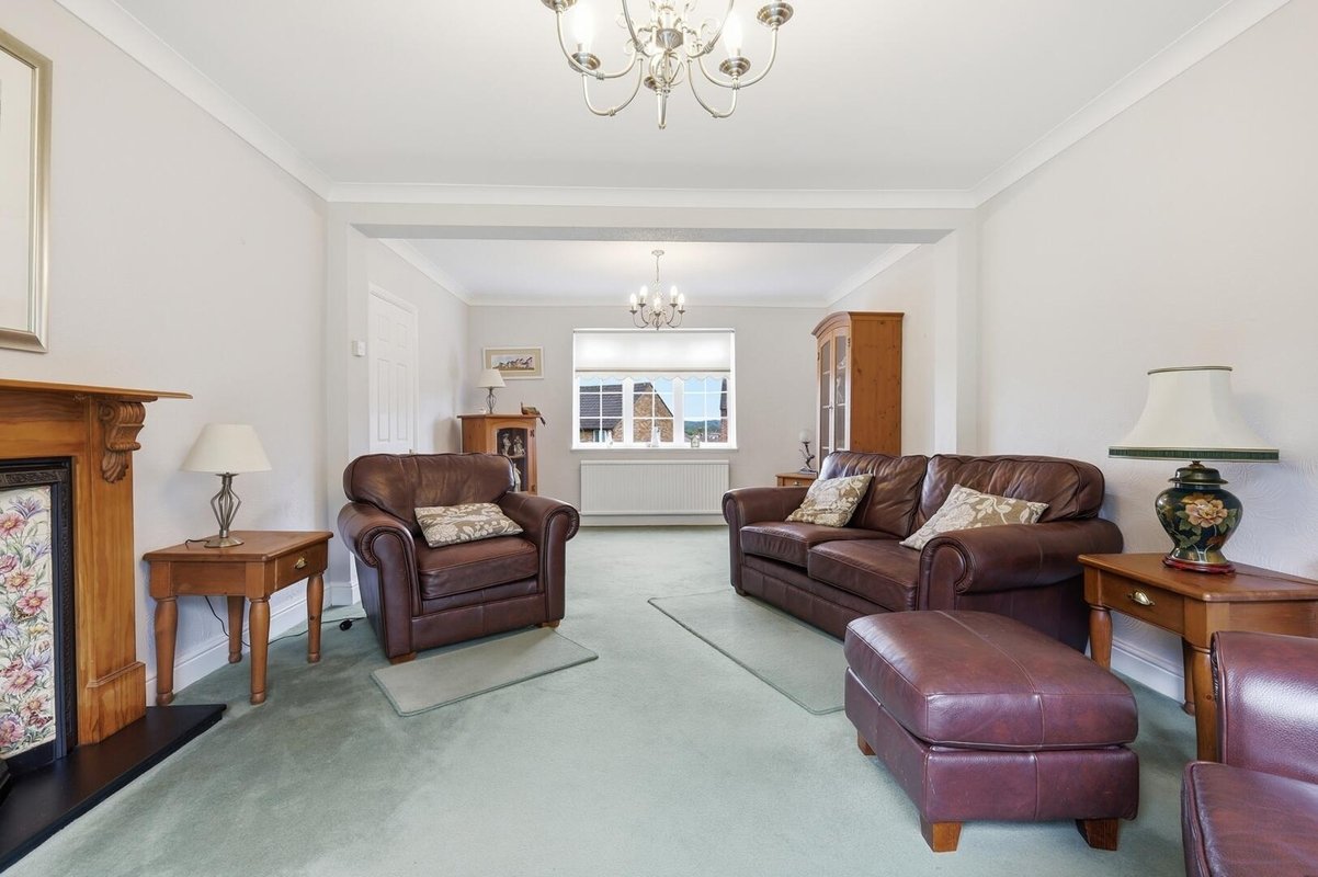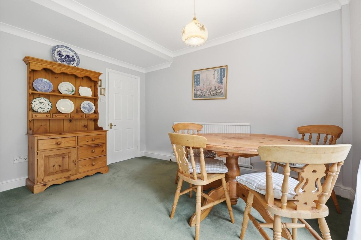 A separate dining room flows seamlessly into a well-proportioned, kitchen fitted with an array of work surfaces and cabinetry. A standout feature is the sizeable utility room, offering practical space to house white goods, while a convenient ground floor W.C. completes the layout.