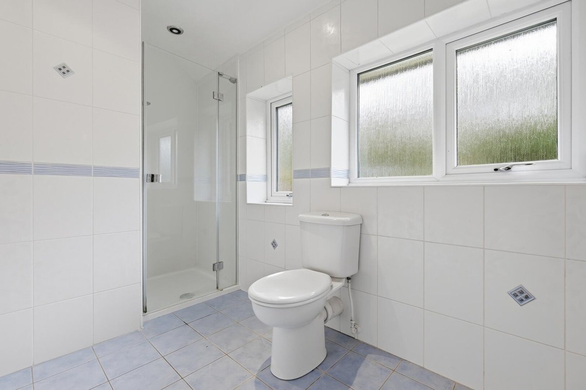 Upstairs, the property offers three well-appointed bedrooms, with the principal bedroom benefiting from extensive fitted wardrobes. A contemporary, fully tiled shower room serves the first floor.