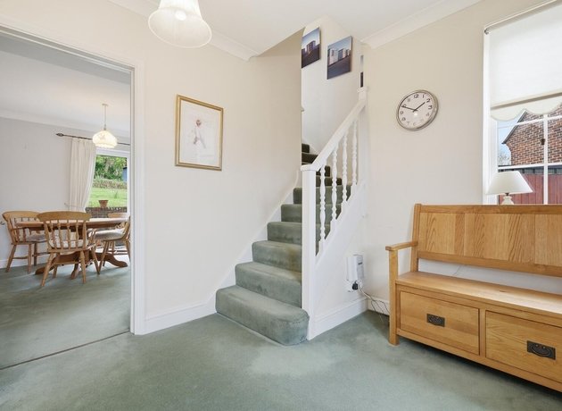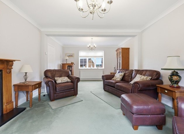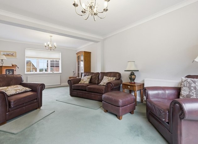 A separate dining room flows seamlessly into a well-proportioned, kitchen fitted with an array of work surfaces and cabinetry. A standout feature is the sizeable utility room, offering practical space to house white goods, while a convenient ground floor W.C. completes the layout.