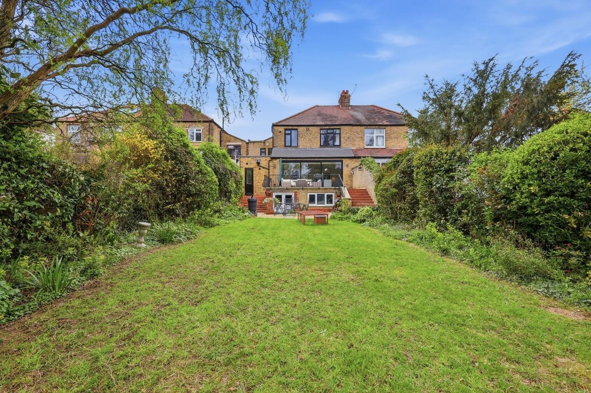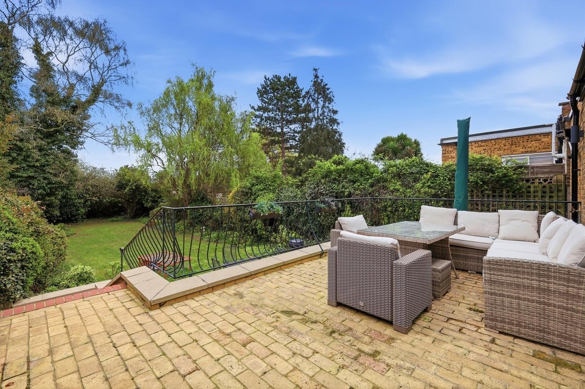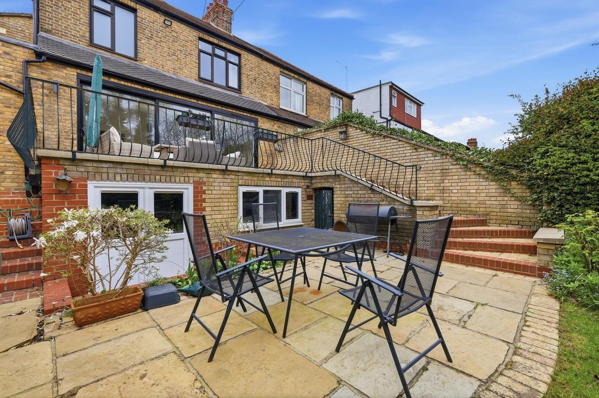 Outside, the raised patio provides the perfect setting for entertaining and summer barbecues, with steps leading down to a private, low-maintenance garden framed by mature trees and planting, creating a peaceful green escape. A hidden gem lies beneath the patio, where a substantial workshop and storage area offers exciting potential. Whether used as a home gym, office, studio or playroom, this versatile space can easily adapt to suit a variety of lifestyles.