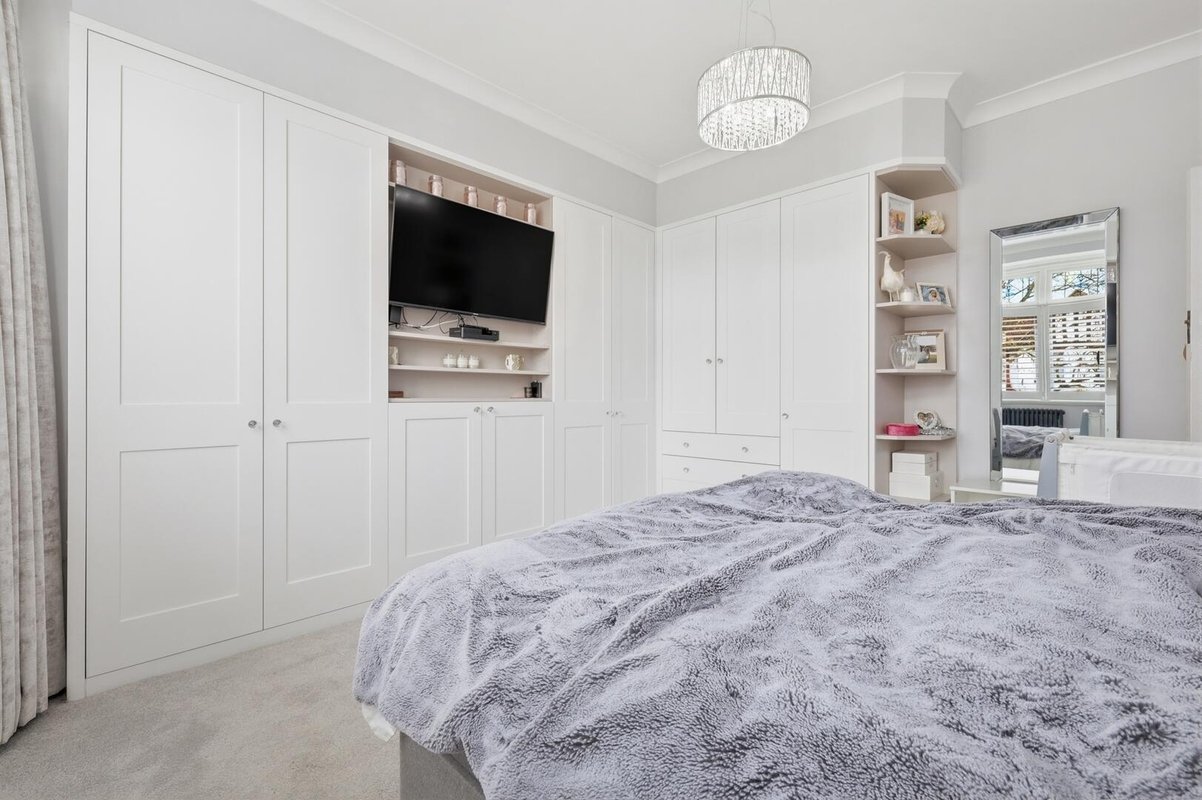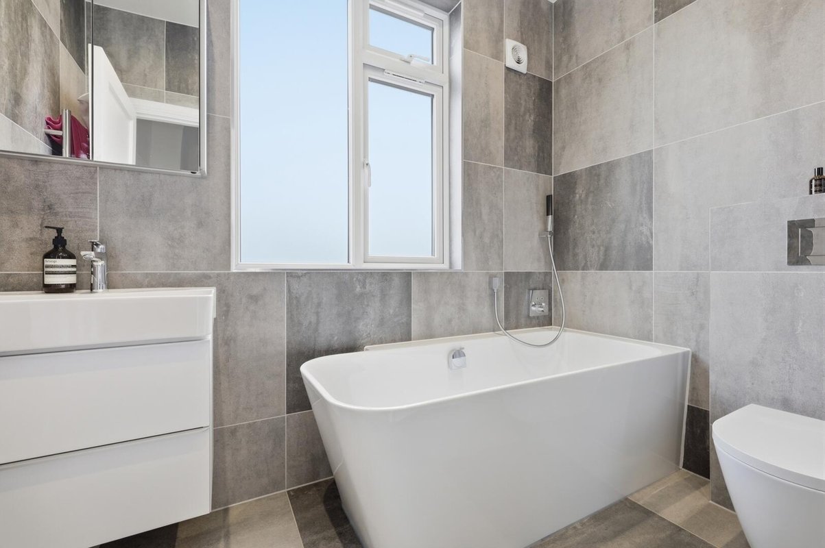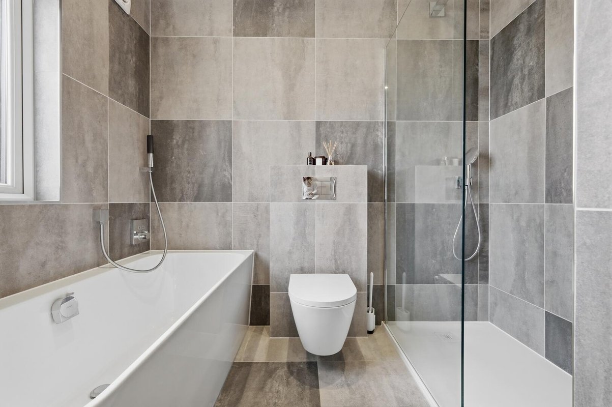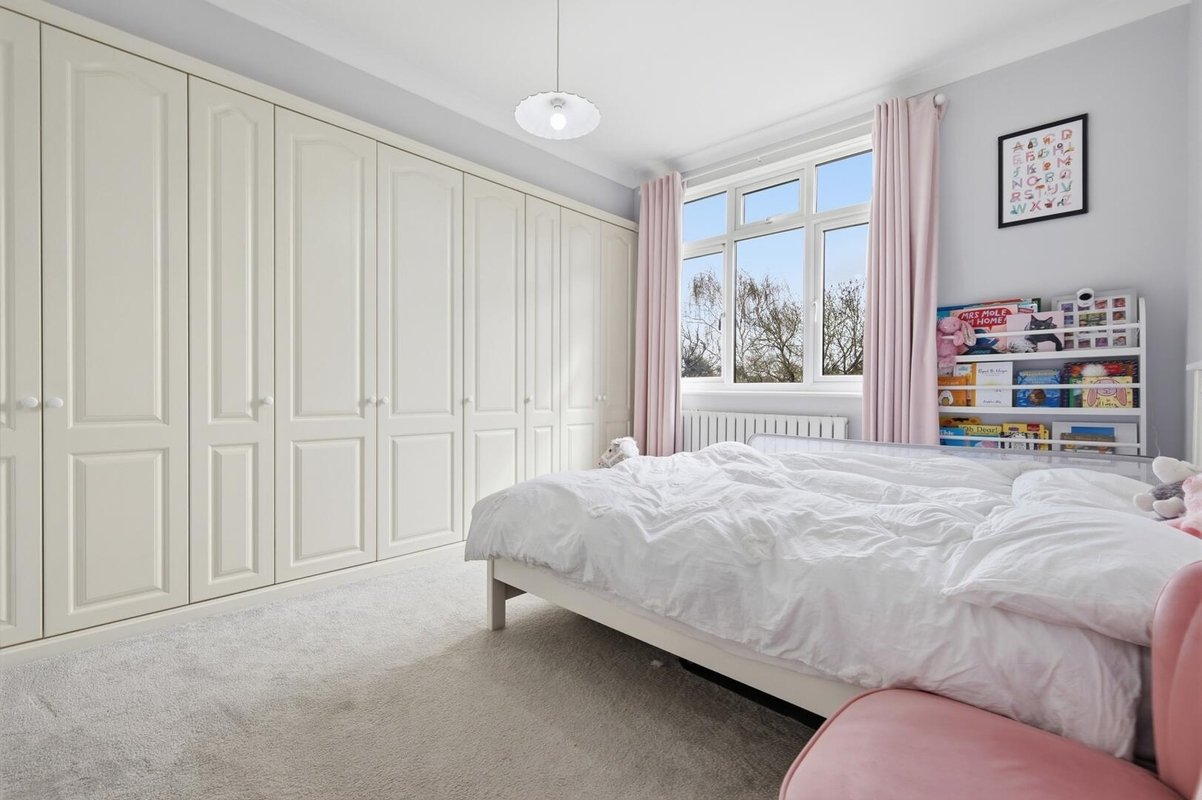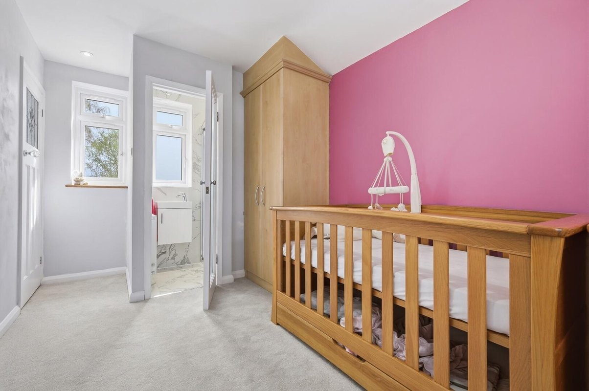 Upstairs, the home continues to impress with four well-proportioned bedrooms. Three of the four bedrooms are doubles, all of which benefit from fitted wardrobes, with one of the bedrooms enjoying its own contemporary ensuite, ideal for guests or older children. The family bathroom offers a calm, spa-like retreat, complete with a sleek walk-in shower and a luxurious bath designed for long, relaxing soaks.