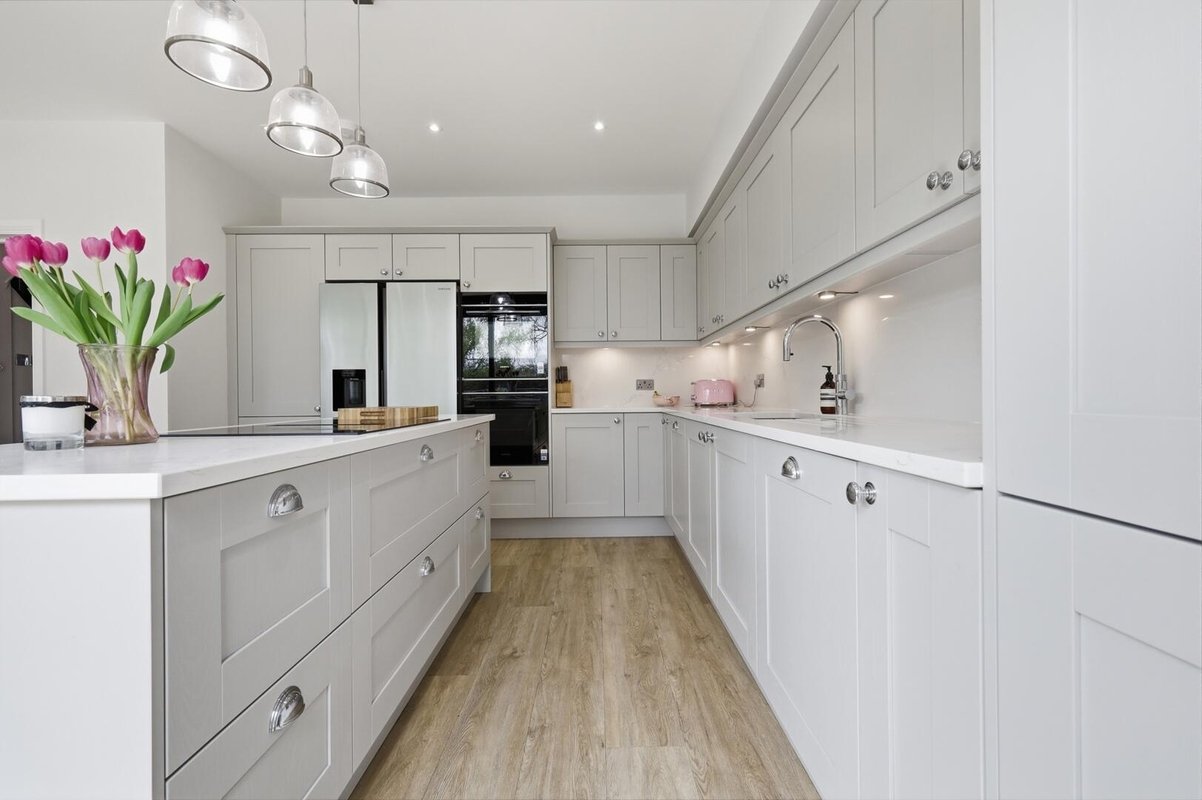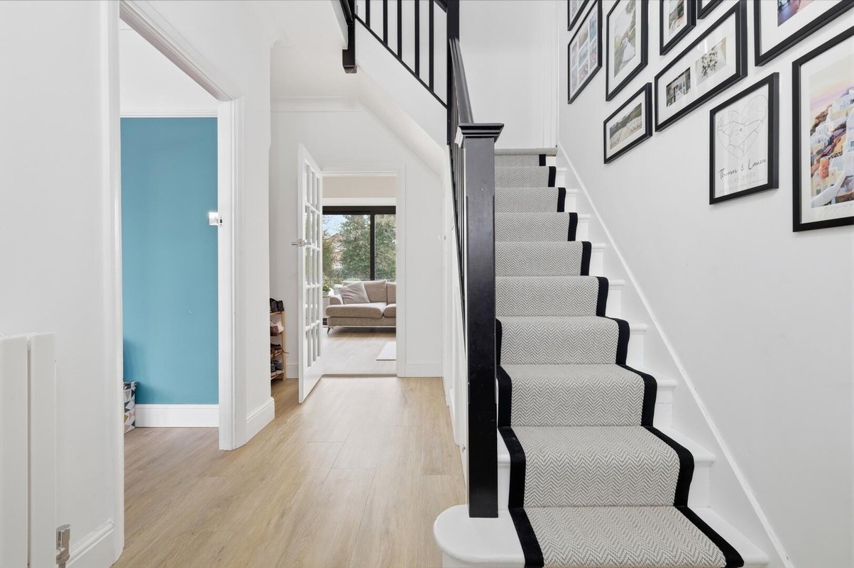 From the moment you arrive, the home makes a lasting impression. The wide frontage, elegant double bay windows and immaculate driveway, offering space for multiple vehicles, creates a welcoming and refined arrival. Stepping inside, a bright and calming hallway sets the tone, with crisp white walls and generous proportions guiding you through the home.