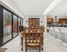 Internally, the house is defined by its generous proportions and high ceilings. Accommodation begins with an entrance porch leading into an equally impressive reception hall, with a home office immediately accessible. The expansive family kitchen/dining room has also been extended to an impressive 20 ft × 21 ft 4 in, creating a highly functional and sociable space at the heart of the home. A recently installed central island forms the focal point of this naturally light-filled room, enhanced by bi-fold doors and a large overhead skylight. The island incorporates storage to both sides, a breakfast bar, dishwasher, drinks fridge, and sink. Surrounding cabinetry comfortably accommodates a large American-style fridge/freezer alongside a range of fitted appliances, while a separate utility room discreetly houses the noisier appliances and provides a secondary sink.