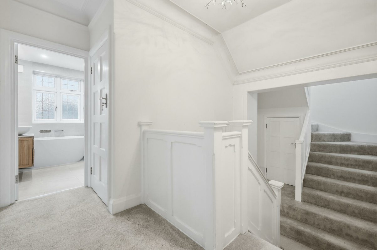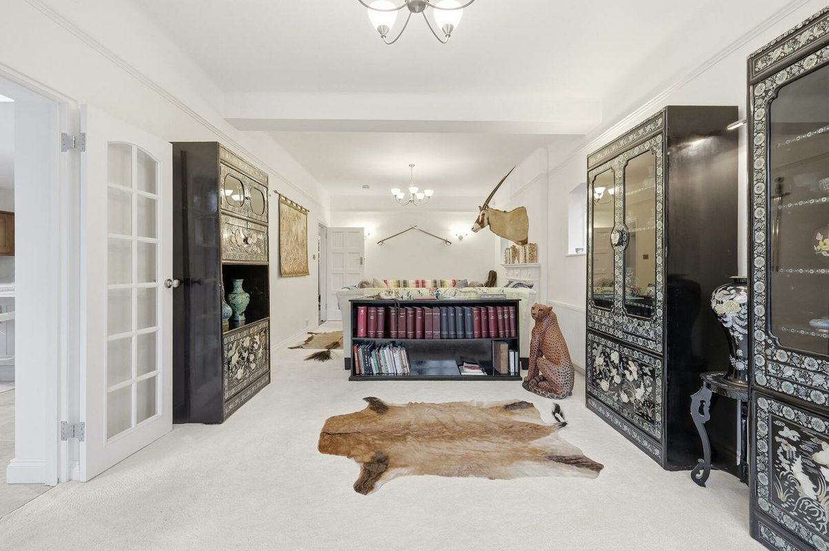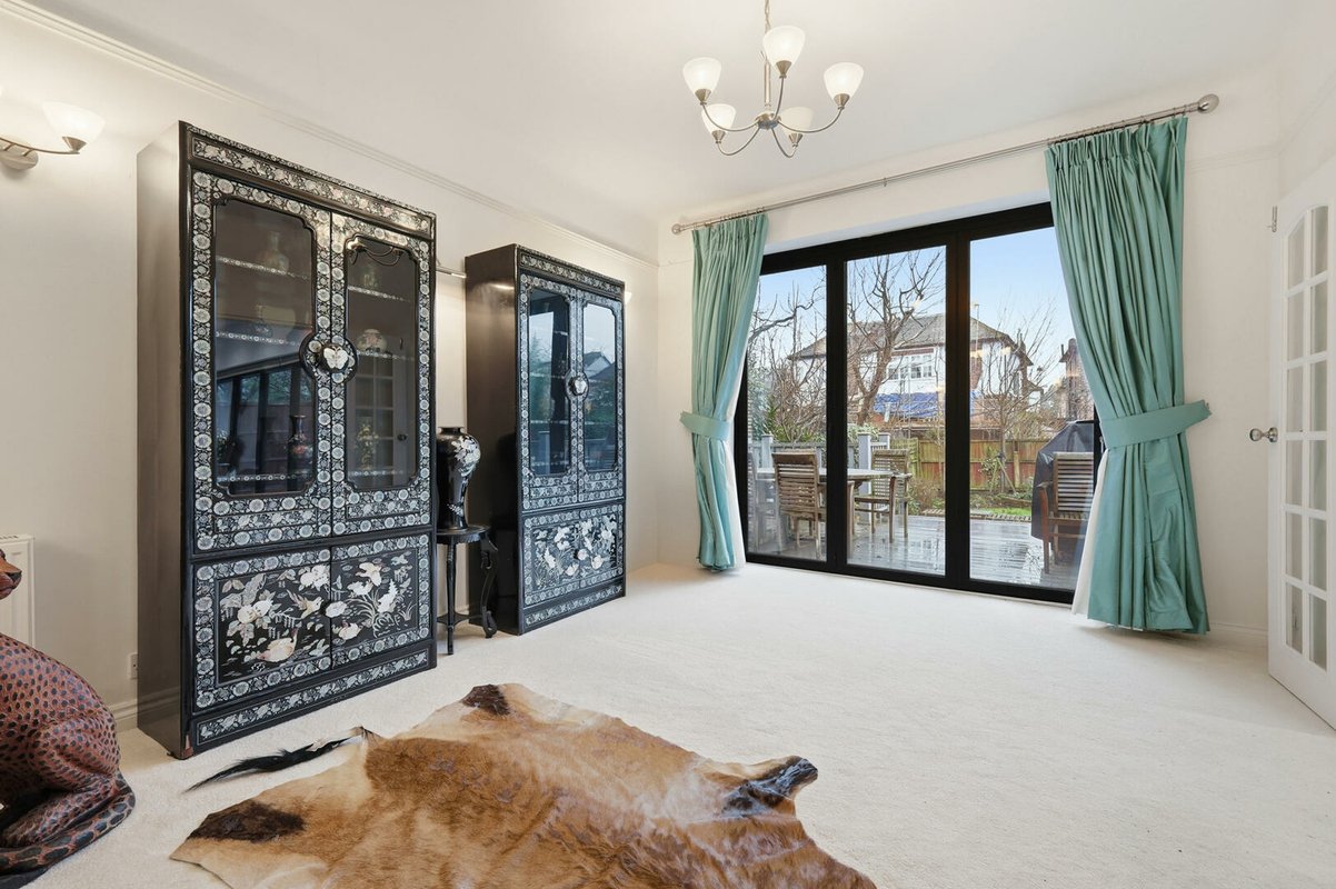 Set behind a quiet cul-de-sac in sought-after Wanstead, this refined detached residence features four double bedrooms, two elegant dressing rooms, three bathrooms, and a private swimming pool.