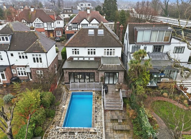 Set in a quiet cul-de-sac in sought-after Wanstead, this refined detached residence features four double bedrooms, two elegant dressing rooms, three bathrooms, and a private swimming pool.