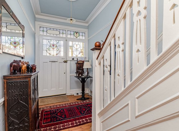 With generously proportioned rooms throughout and character in every corner, this impressive residence offers a wealth of versatile space, ideal for modern family living, creative layouts, or future enhancement to truly make it your own. Commencing with an enclosed porch, ideal for muddy boots and framed by bespoke stained glass windows, the porch leads to a wide entrance hall and from there to two elegant formal reception rooms. Both receptions provide abundant character and charm, each showcasing impressive fireplaces, deep cornicing, and high skirting. The front reception is bathed in natural light via a generous bay window, while the rear reception boasts direct access to the patio and beautifully maintained rear garden, perfect for both entertaining and quiet family evenings. The adjacent kitchen to the rear has been thoughtfully extended to incorporate a bright and spacious dining area, perfectly designed for modern family life. Flanked by bi-fold doors on two sides, the space can be seamlessly opened-up to the surrounding patio and mature rear garden, creating a wonderful sense of flow between indoors and out - ideal for al fresco dining, summer entertaining, or simply enjoying the tranquillity of your own green oasis. There is also a handy downstairs W.C which completes the ground floor accommodation.