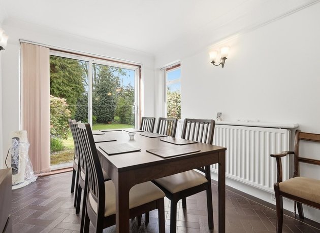 The versatility of the home is further enhanced by a converted garage which now serves as a large additional reception room. Currently used as a fourth bedroom, this space is ideal for guest accommodation, a dedicated home office, a gym, or a playroom. A practical ground floor cloakroom is also conveniently accessible from the main hallway.