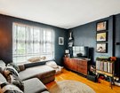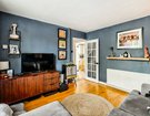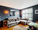 The front reception room is painted in a rich, deep blue, which gives the room an intimate, elegant feel, but remains beautifully light thanks to a large front window.